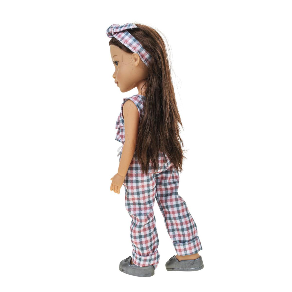 Представляем очаровательную куклу высотой 36 см, которая станет настоящей подругой для вашей маленькой модницы. Ее главное достоинство – великолепные длинные волосы, которые так и просятся, чтобы их расчесывали, укладывали и создавали на них самые разнообразные прически. Этот процесс не только увлекателен, но и отлично развивает мелкую моторику, фантазию и творческие способности ребенка. Кукла одета в стильный наряд: яркий топ с узором в полоску и удобные штанишки с пояском, выполненные из качественных материалов. Изящные серебристые ботиночки завершают образ.