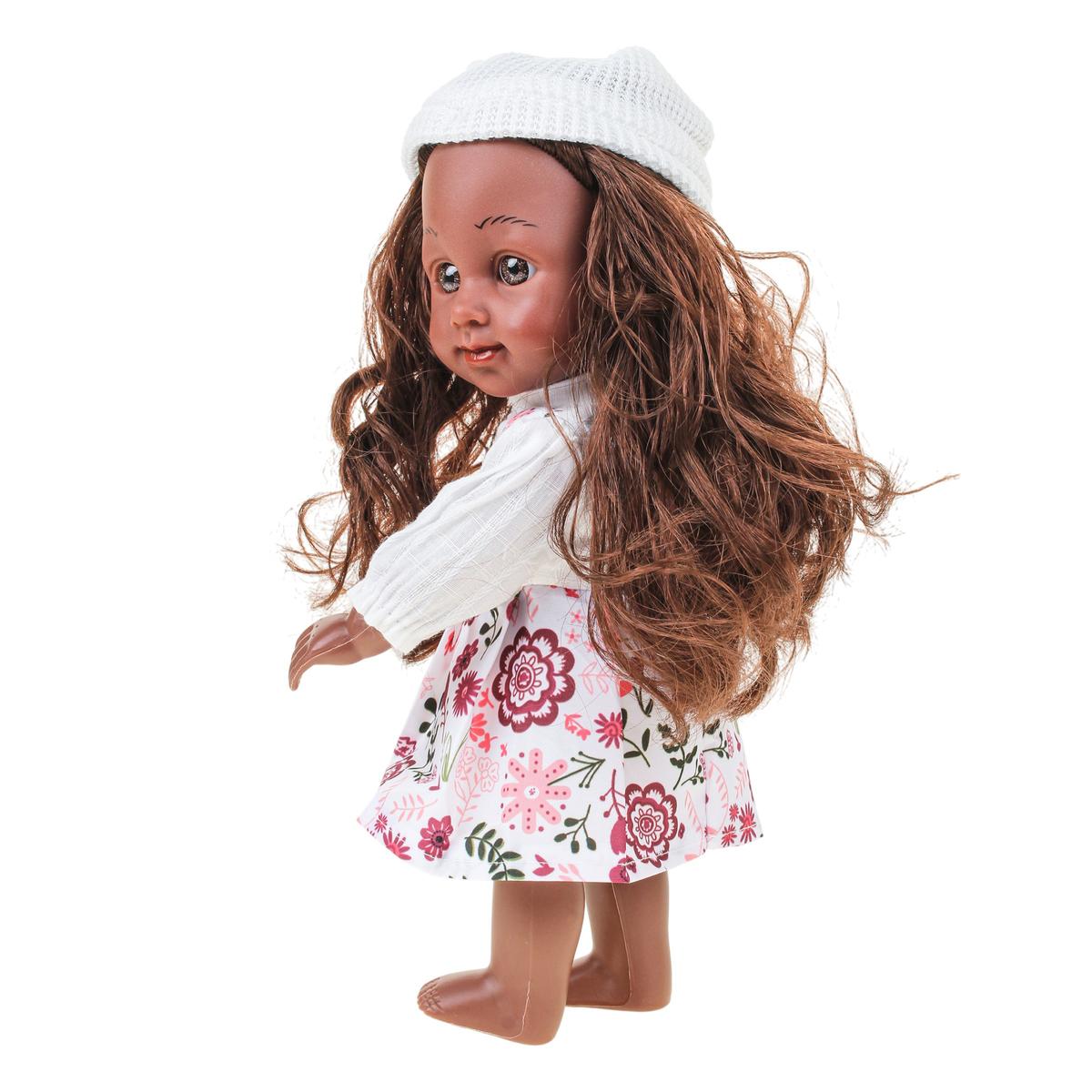Кукла одета в светлую кофту и сарафан с цветочным принтом, образ дополняет аккуратная шапочка. Подходит для детей от 2 лет. Игрушка поставляется в коробке с прозрачным окном — удобно для подарка и хранения.
