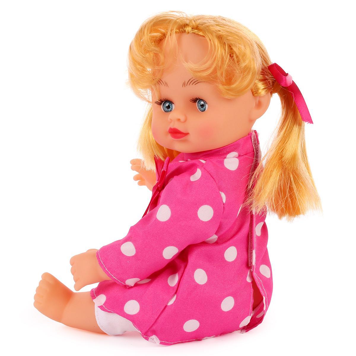 Кукла озвученная Алина станет настоящим другом для вашей девочки. С ней можно играть, общаться и развивать воображение. Эта кукла не только красивая, но и функциональная, что делает её отличным выбором для подарка. Яркое розовое платье с белыми горошками и бантом придаёт ей особый шарм, а длинные светлые волосы позволяют создавать различные прически, что добавляет элемент творчества в игру.