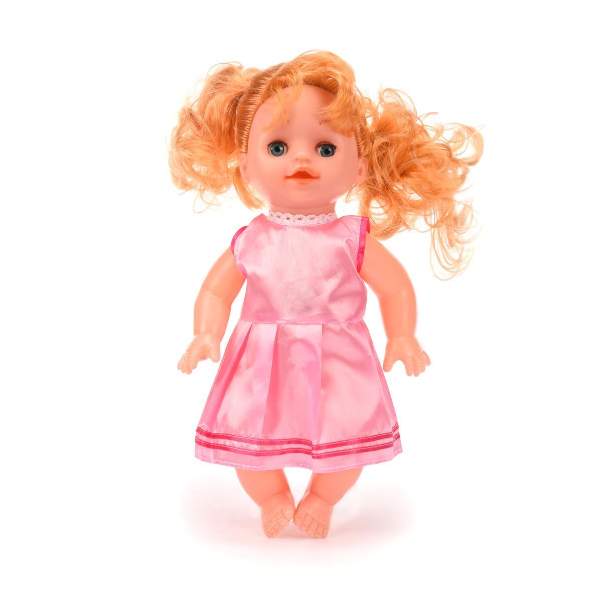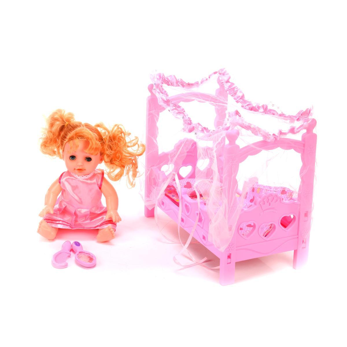 Кукла интерактивная с кроваткой, озвученная, розовое платье, оранжевые волосы, 45*30*13 см