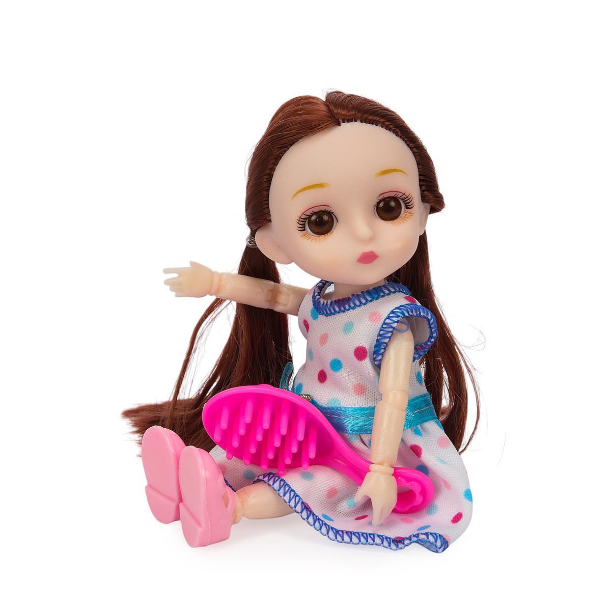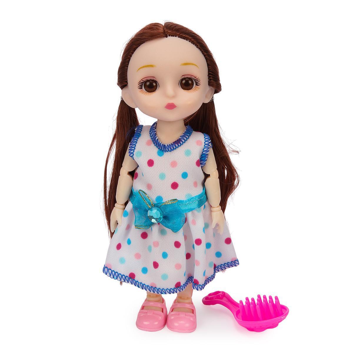 Кукла классическая 22см с расческой, платье в горошек, волосы для причесок