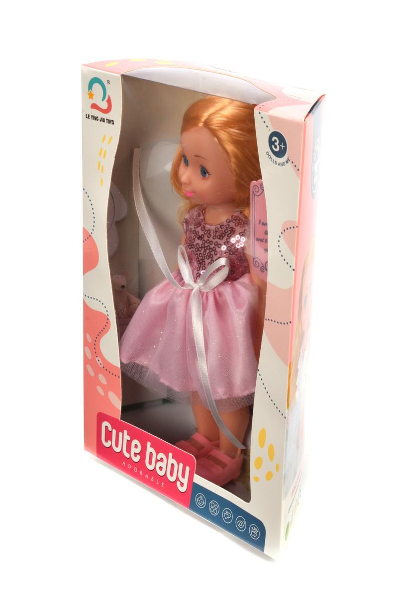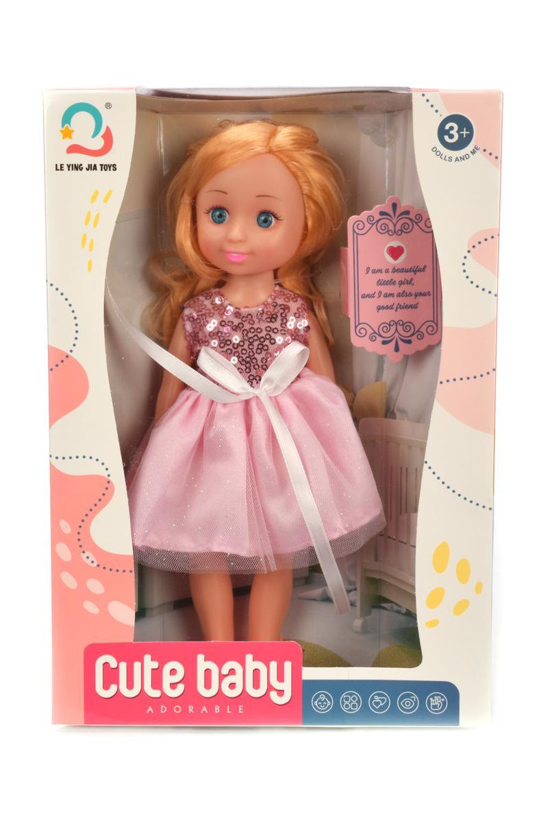 Кукла классическая "Cute Baby" 25 см, подвижные руки/ноги, розовое платье с блестками, текстиль/пластик
