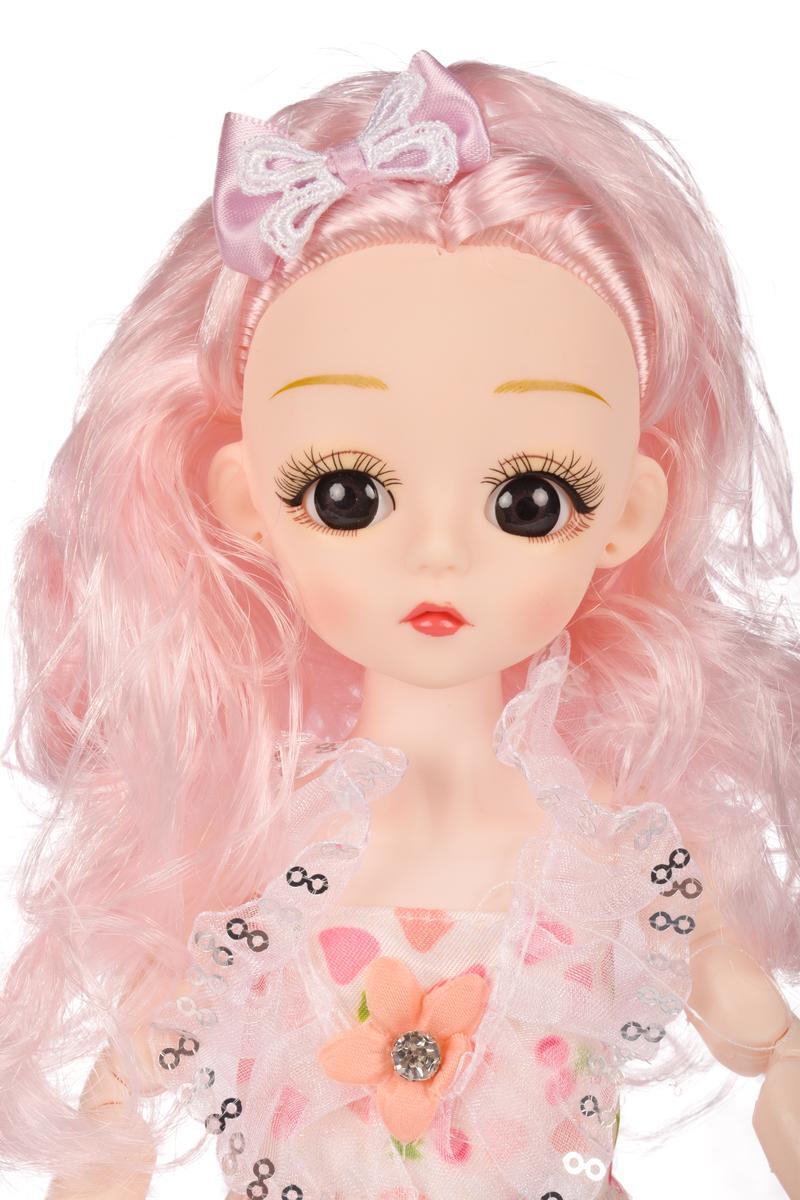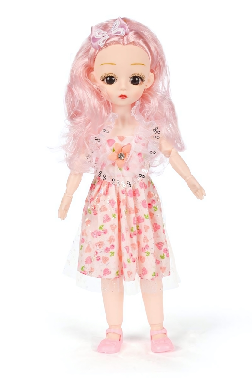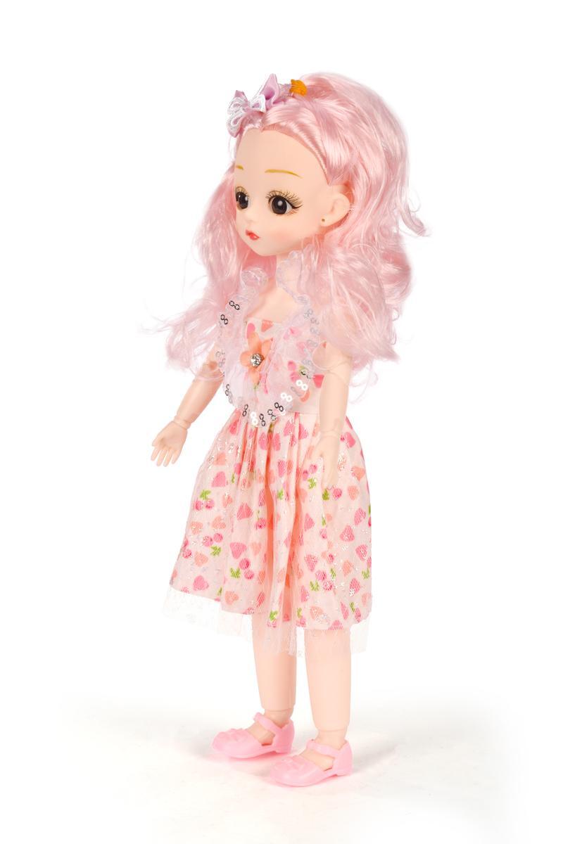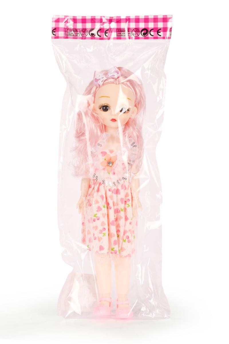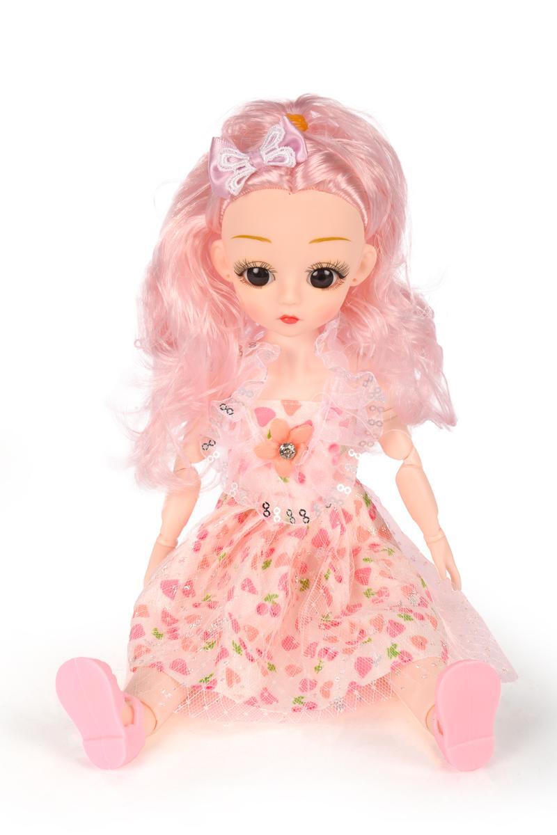 Классическая 29см кукла с ярким платьем, пластик, текстиль, розовые волосы