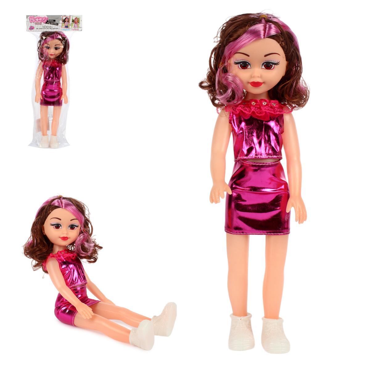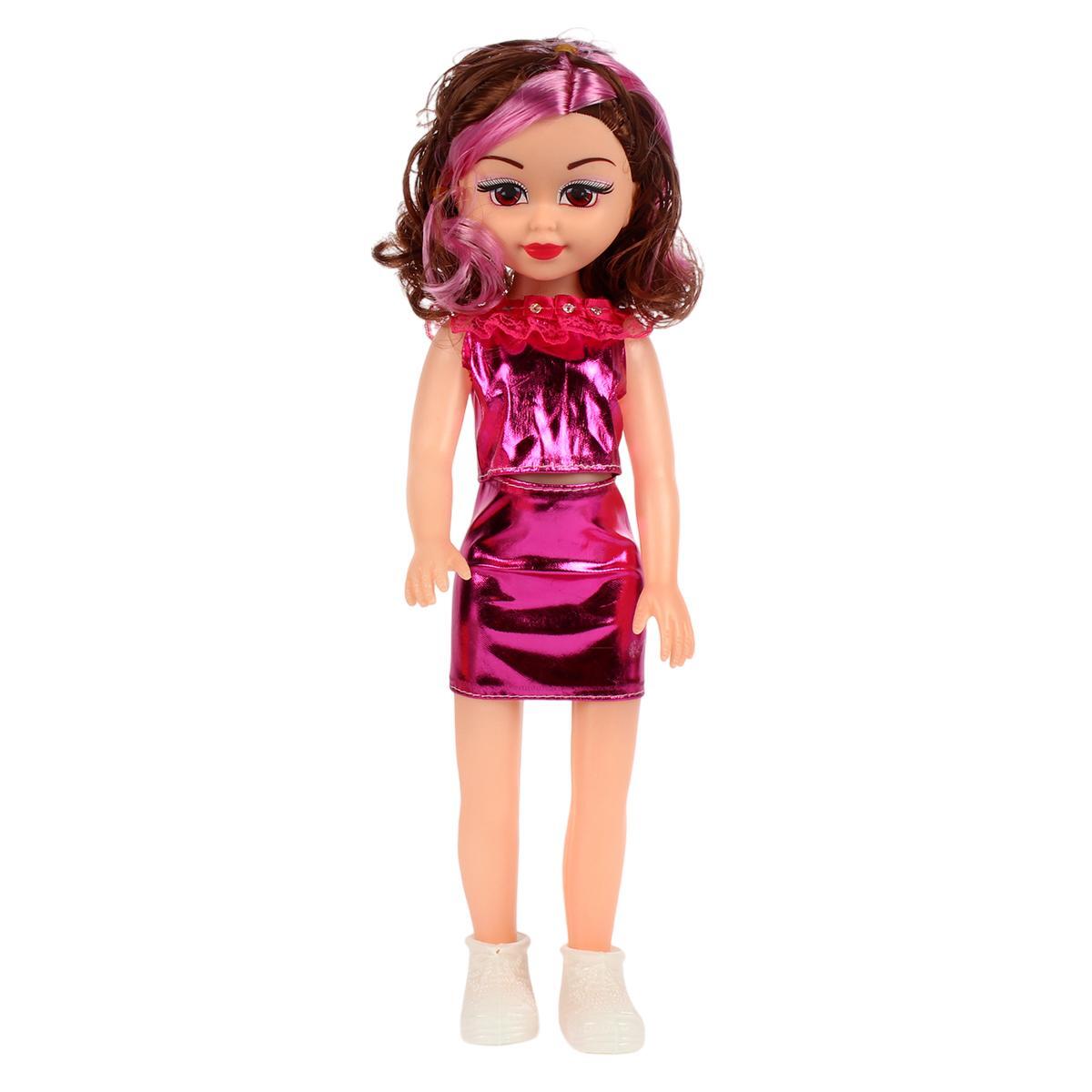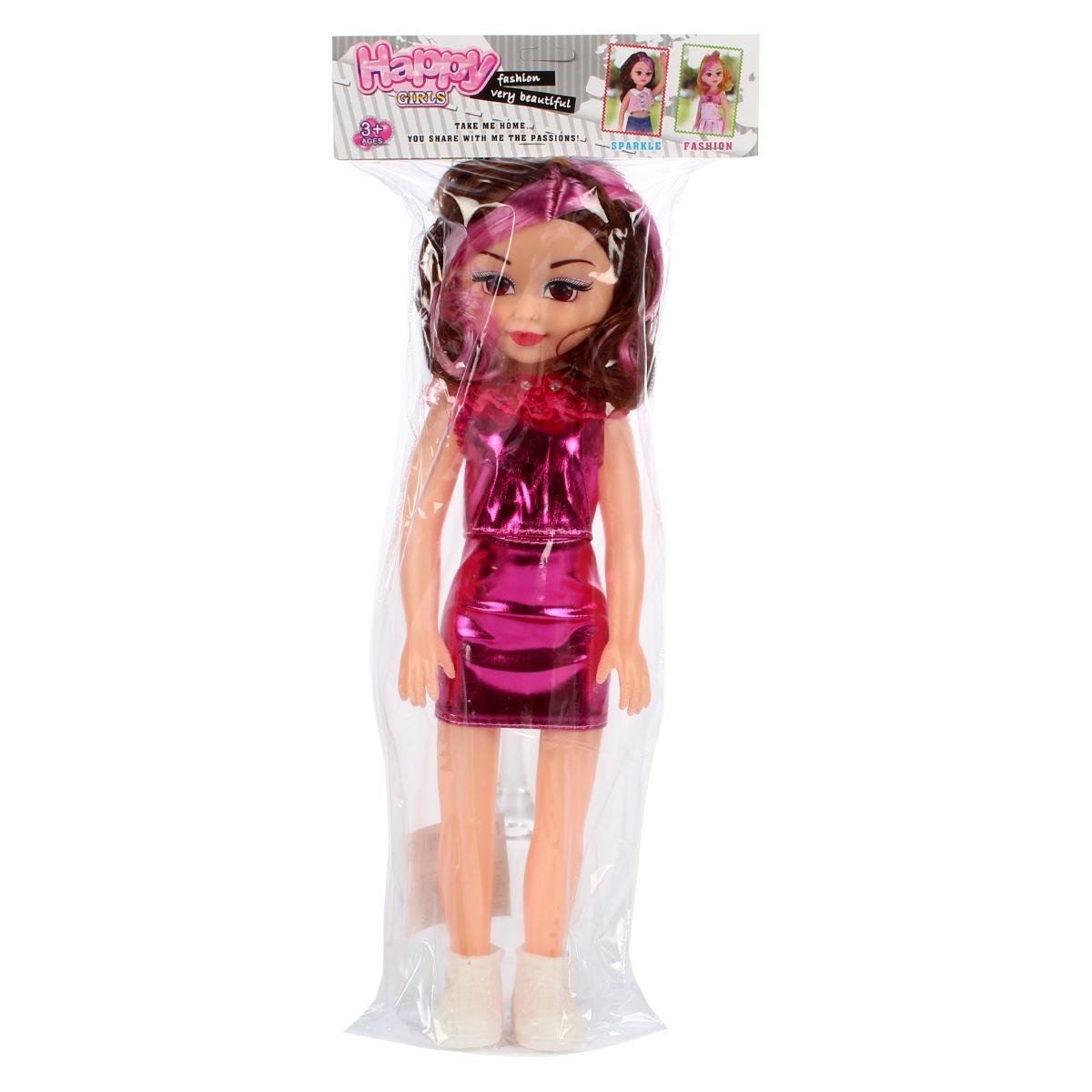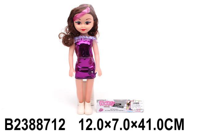 Яркое фиолетовое платье с рюшами и блестящая отделка делают игрушку визуально привлекательной. Текстильные элементы одежды развивают тактильное восприятие, а прочная конструкция выдерживает активные игры. Кукла полностью готова к использованию — просто достаньте её из защитной упаковки.