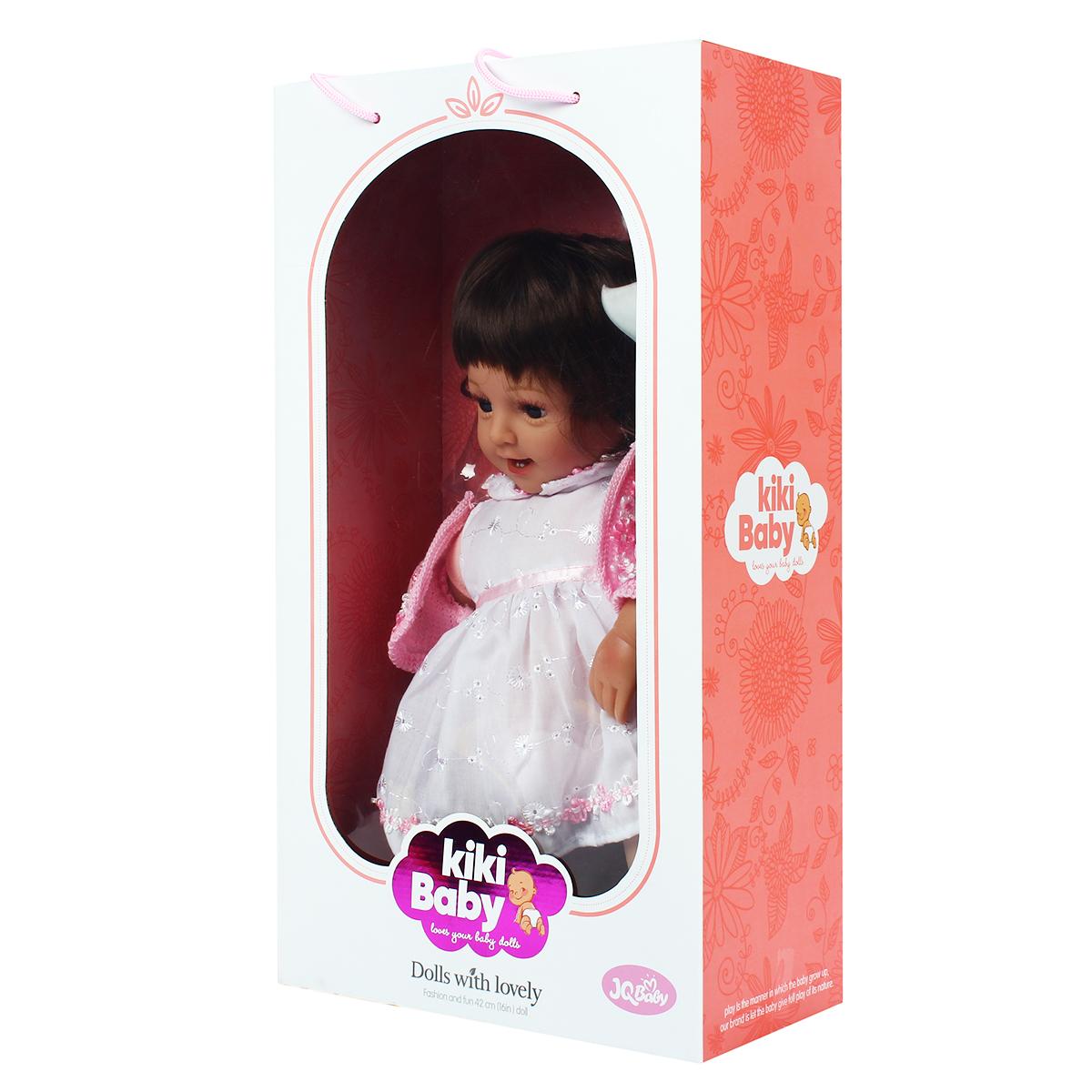 Кукла одета в красивое платье и комплект аксессуаров — памперс и соска, что добавляет разнообразия в игру. Высота 42 см, её удобно держать и играть, а компактная упаковка 24х12,5х43,5 см позволяет легко хранить и перевозить.