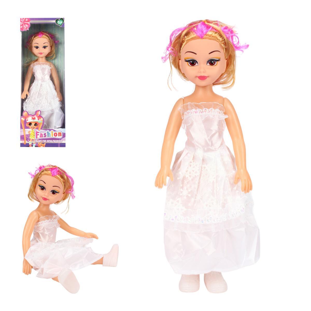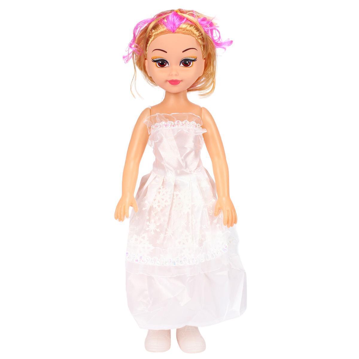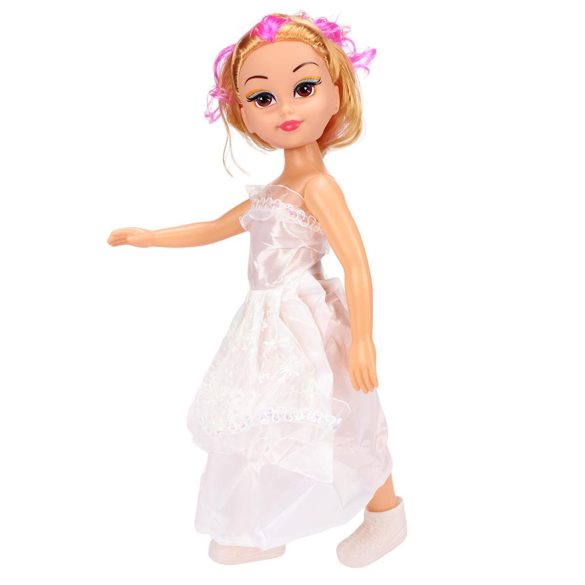 Кукла классическая 45см с звуковым эффектом, белое кружевное платье, розовые пряди, пластик и текстиль