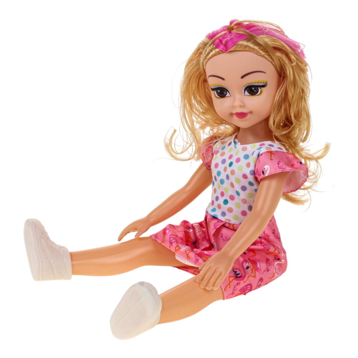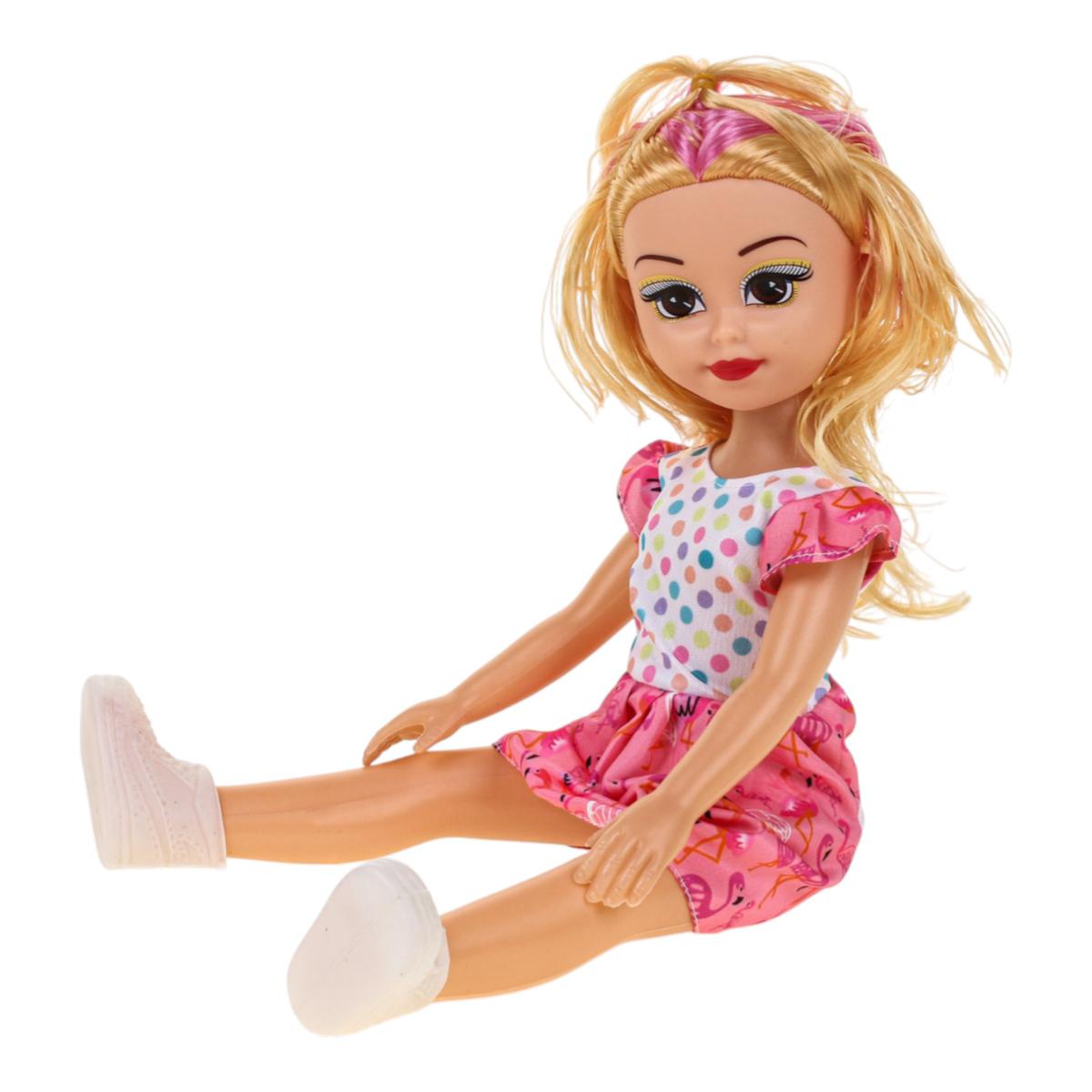 Игрушка изготовлена из прочного пластика и текстиля, что обеспечивает устойчивость к активным играм. Подвижные элементы позволяют кукле сидеть, делая игру более реалистичной. Одежда аккуратно сшита и легко снимается, поэтому ребенок сможет самостоятельно менять образы.