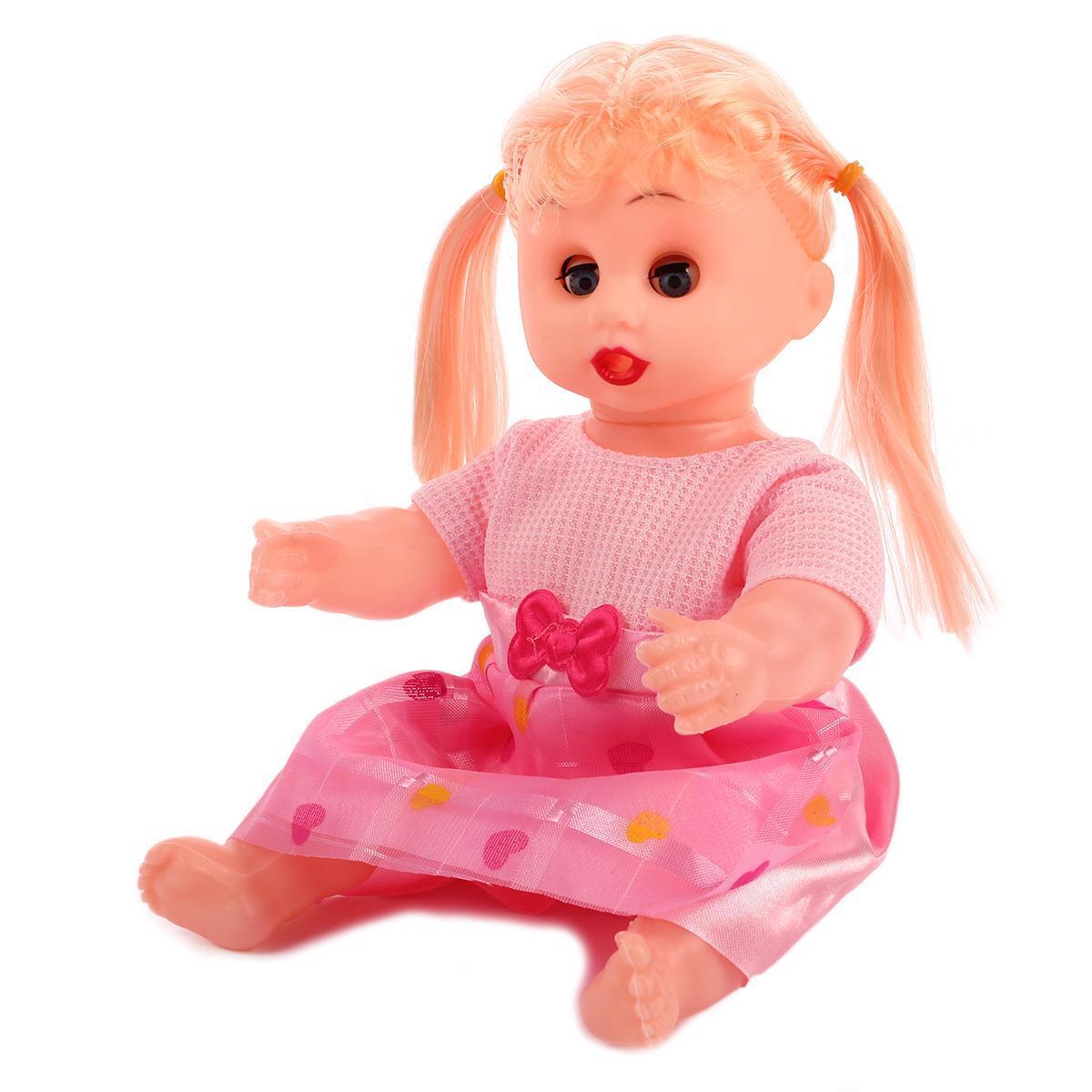 Кукла интерактивная озвученная "2023-10", светлые волосы, розовое платье, пластик, 25 см