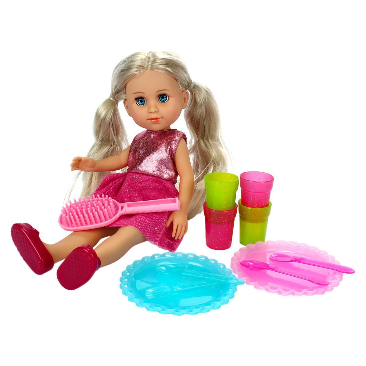 - Кукла высотой 30 см с длинными светлыми волосами и голубыми глазами