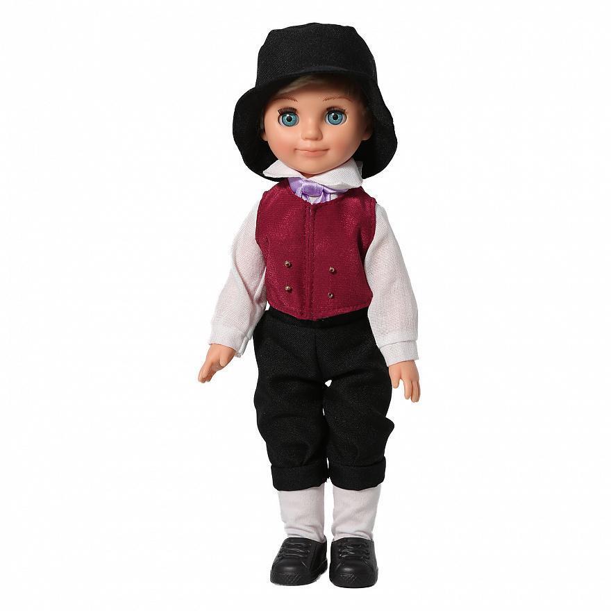 Кукла выполнена в традиционном норвежском костюме, который максимально приближен к национальному наряду. В комплект одежды входят белая рубашка, бриджи, жилет, гольфы, галстучек и шляпа, что позволяет ребенку не только играть, но и развивать свою фантазию. Кукла подходит для детей от 3 лет и старше, что делает её отличным подарком для любого праздника.