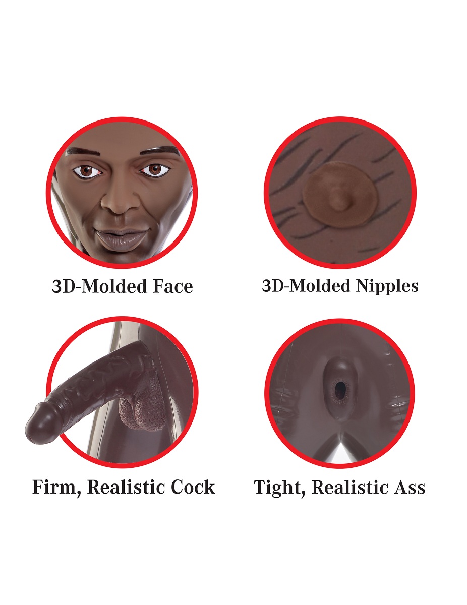 Погрузитесь в мир чувственного удовольствия с надувной куклой «Reggie Pipes». Этот темнокожий сердцеед с выразительными черными глазами и атлетичным телосложением создан для того, чтобы подарить вам незабываемые эмоции и реализовать самые смелые фантазии. Идеально подходит для индивидуального использования.