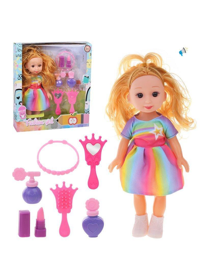 Вы можете использовать куклу как для сюжетных игр, так и для создания модных образов, так как в комплект входит множество аксессуаров: браслет, косметика, зеркальце и расческа. Яркое платье, обувь и дополнительные элементы позволяют создавать уникальные стили, развивая у ребенка вкус и творческое мышление.