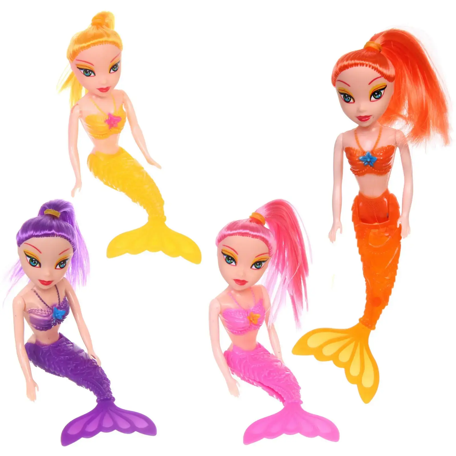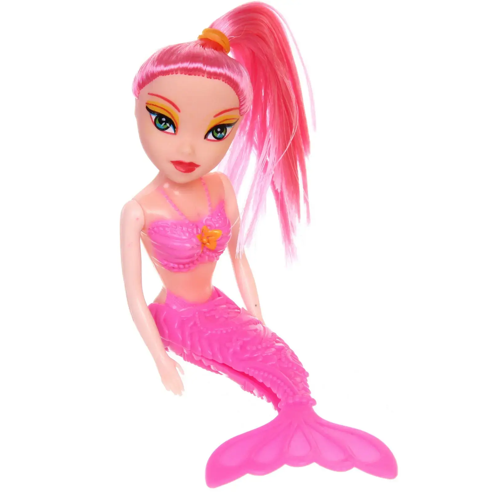 Кукла выполнена из качественного пластика и текстиля, что обеспечивает ее долговечность и безопасность для детей. Размер куклы составляет 21 см, что делает ее удобной для игры и хранения. Каждая кукла имеет индивидуальный стиль: яркие хвосты и верхние части костюмов, украшенные звездами и другими элементами, привлекают внимание и радуют глаз.