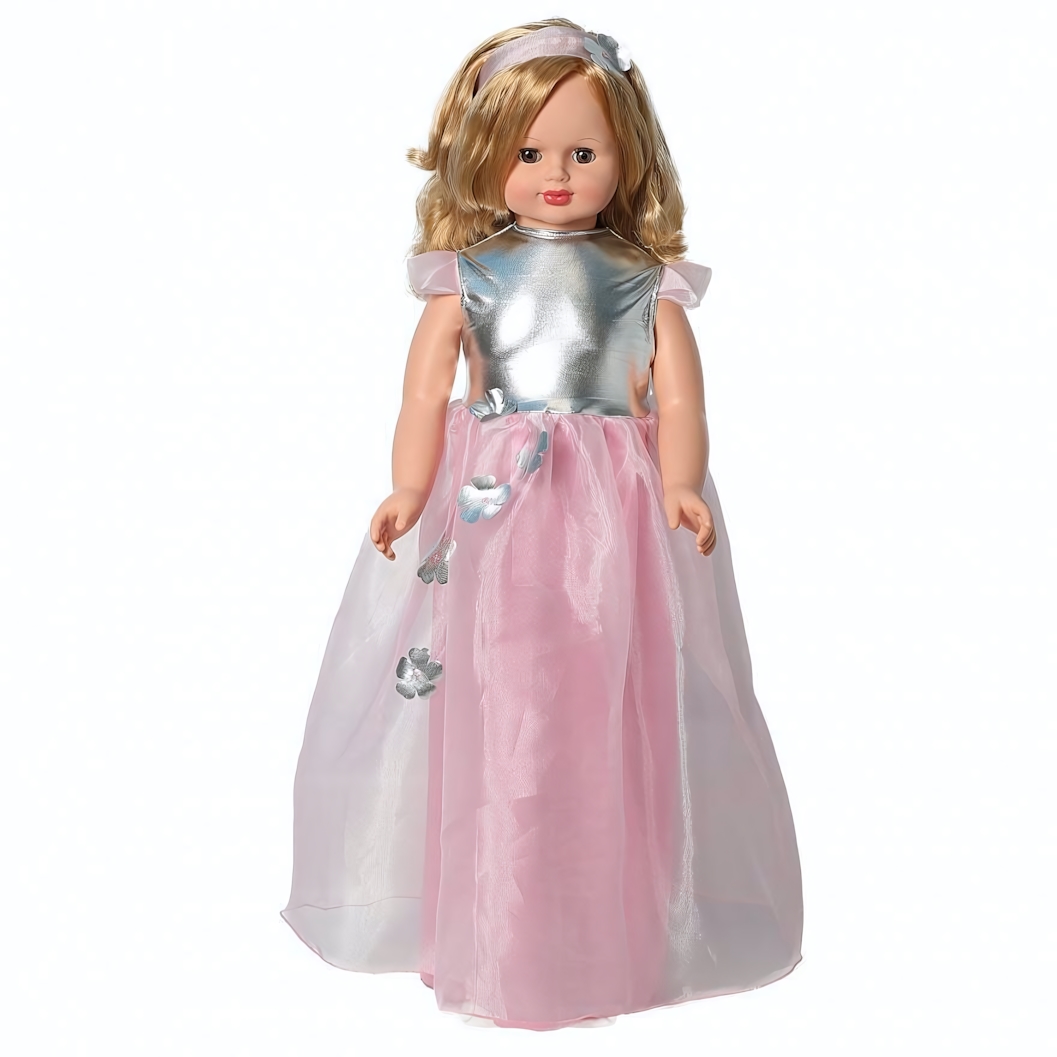 Кукла оснащена механизмом движения, что позволяет водить её за руку. Глаза куклы вставные и закрывающиеся, а ручки и голова выполнены из эластичного винила, что делает её приятной на ощупь. Туловище и ноги изготовлены из прочного пластика. В спинку куклы встроено звуковое устройство, которое активируется при нажатии. Важно помнить, что куклу не рекомендуется усаживать, чтобы избежать поломки механизма.