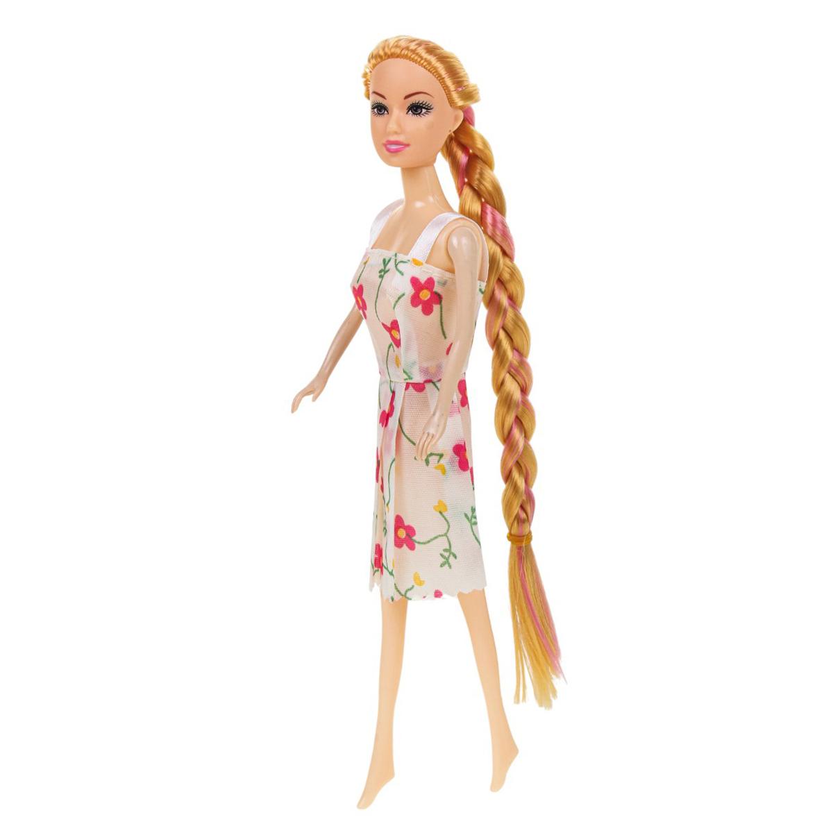 - Стильный образ и съемные аксессуары: Кукла одета в красивое розовое платье без рукавов, украшенное белыми сердечками. Одежда и аксессуары легко снимаются и надеваются, что способствует развитию мелкой моторики и вкуса.