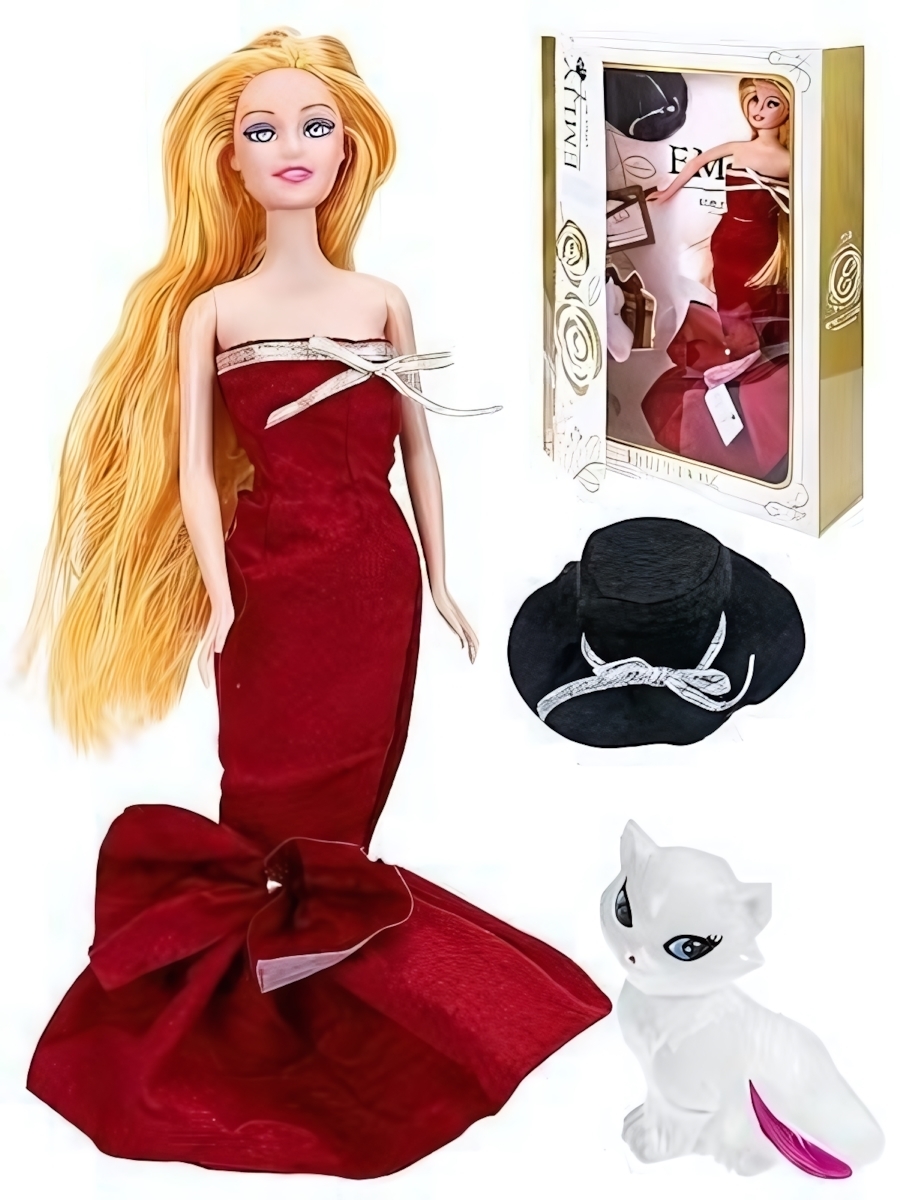 Кукла модельная 29см, "Вечерний наряд 2", с аксессуарами и кошкой, текстильное платье