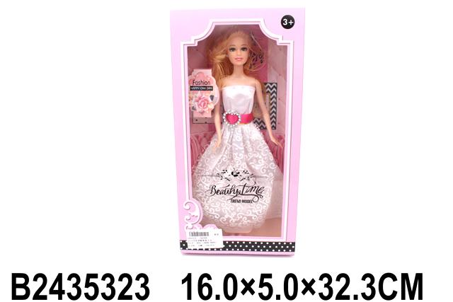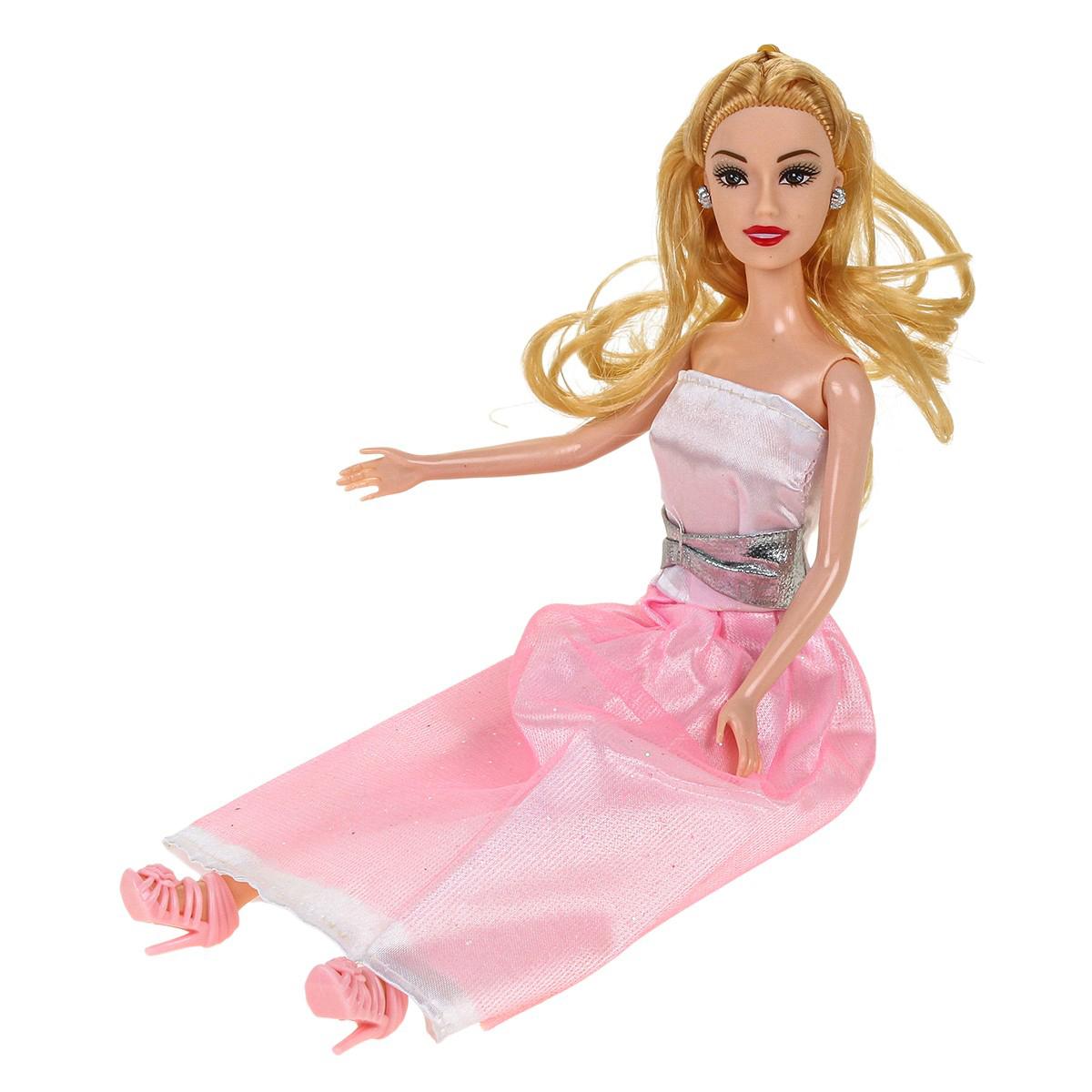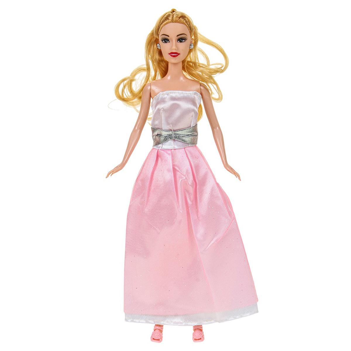 - Элегантный дизайн: кукла одета в красивое белое платье с пышной юбкой и розовым поясом, а ее светлые распущенные волосы можно расчесывать.