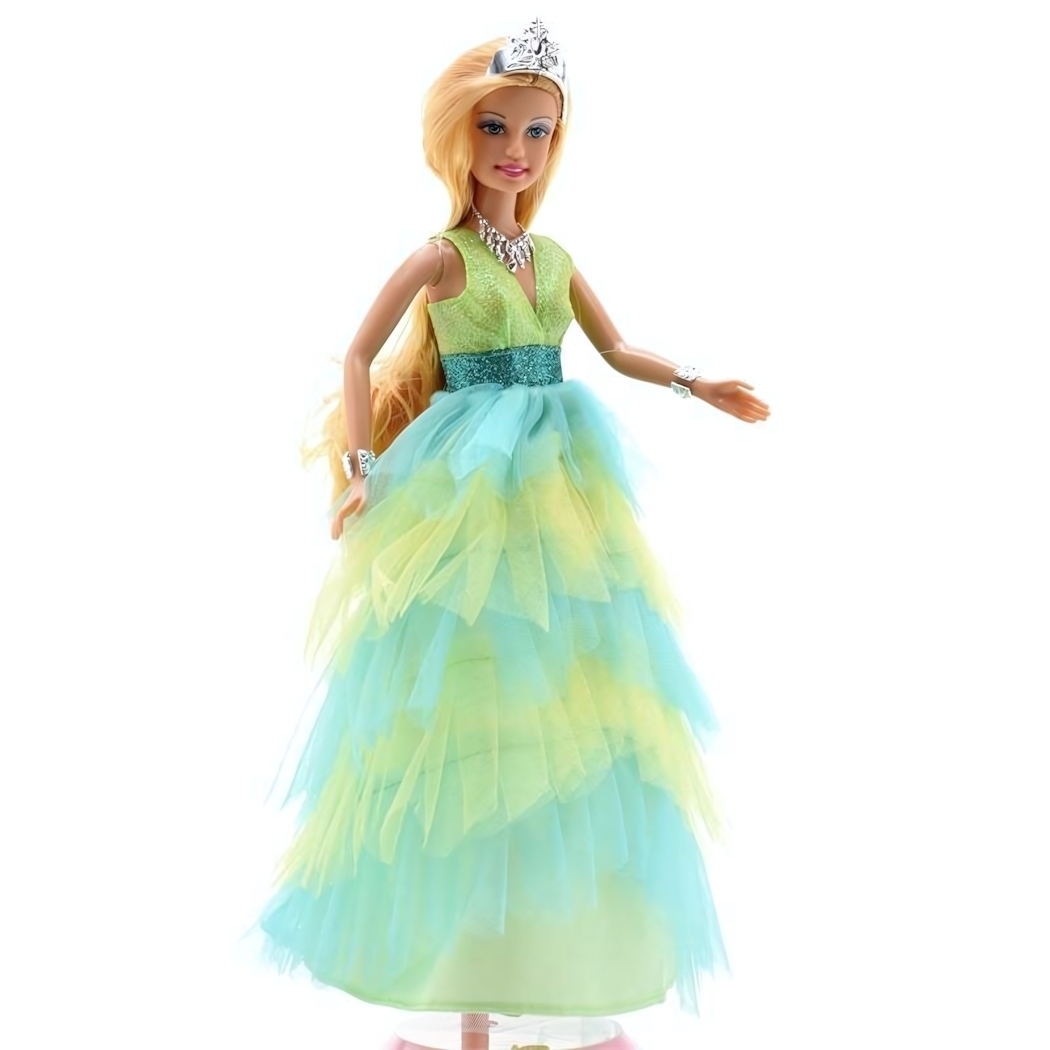 Платье из комбинированных тканей с пайетками и серебристыми аксессуарами создает королевский образ. Все элементы выполнены из безопасных материалов: гипоаллергенный пластик и текстиль. Игрушка способствует развитию социальных навыков через ролевые игры и творческое самовыражение.