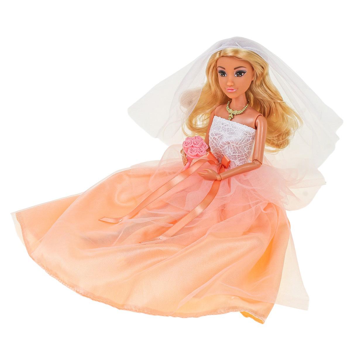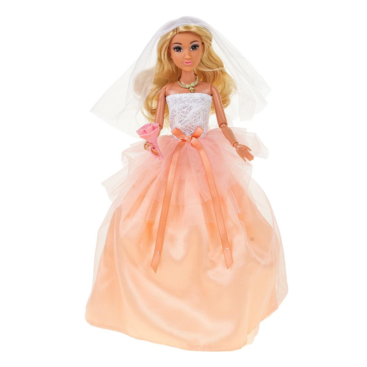 Кукла «Anelly» обладает роскошным свадебным платьем, состоящим из нежного светло-розового тюля и белого корсажа с текстурой, напоминающей кружево. Длинные, струящиеся светлые волосы и элегантный головной убор дополняют образ невесты. Важно отметить, что одежда и аксессуары легко снимаются и надеваются, что способствует развитию мелкой моторики и самостоятельности ребенка. Руки куклы подвижны – прокручиваются и двигаются вперед-назад, а голова поворачивается, придавая игре еще больше динамики.