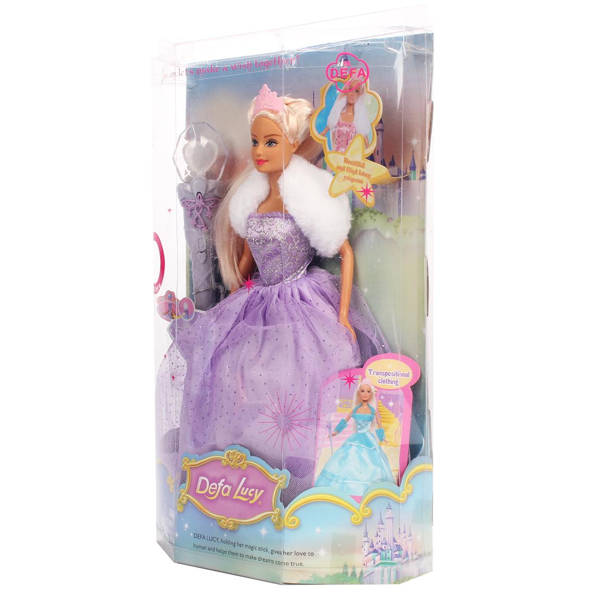 Кукла фея «Defa Lucy» с волшебной палочкой, 29 см, бальное платье с меховым болеро, корона