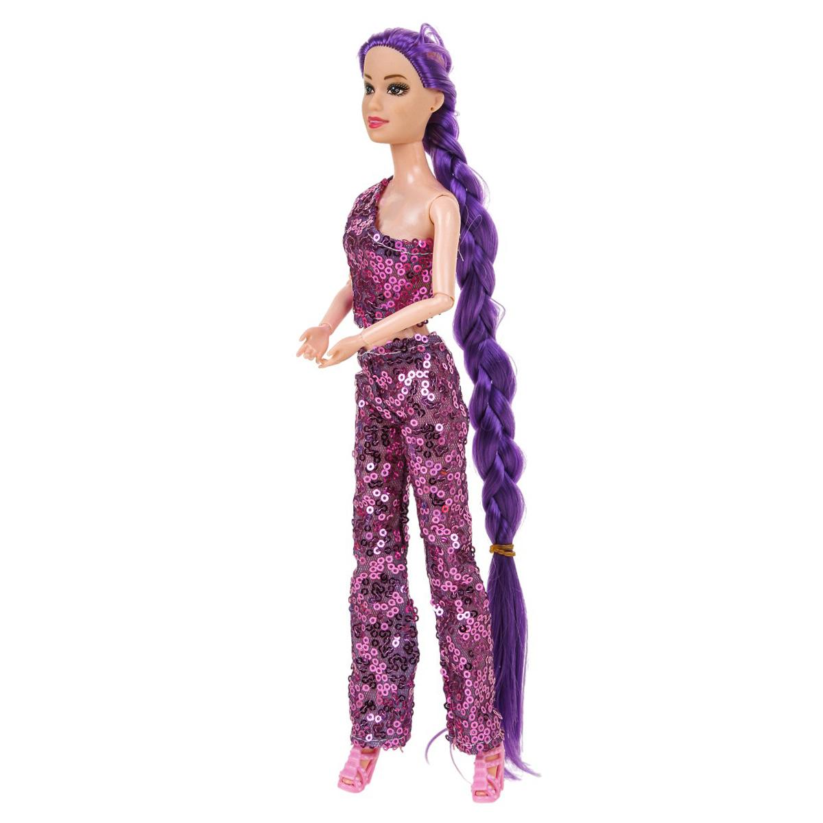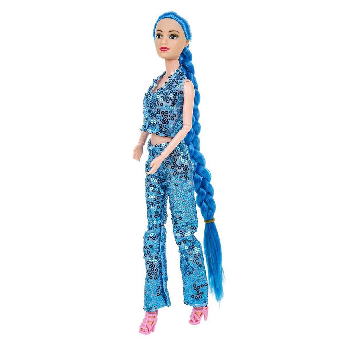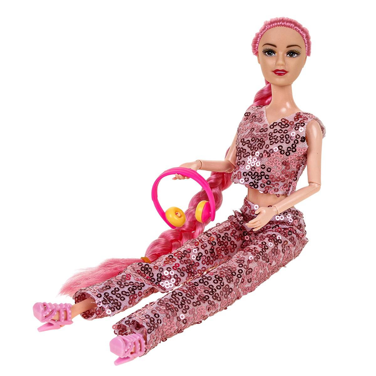 - Стильный дизайн и аксессуары: Кукла одета в модный блестящий костюм и имеет длинные волосы, заплетённые в косу. В комплектации могут присутствовать дополнительные аксессуары, например, наушники, что делает игру ещё интереснее.
