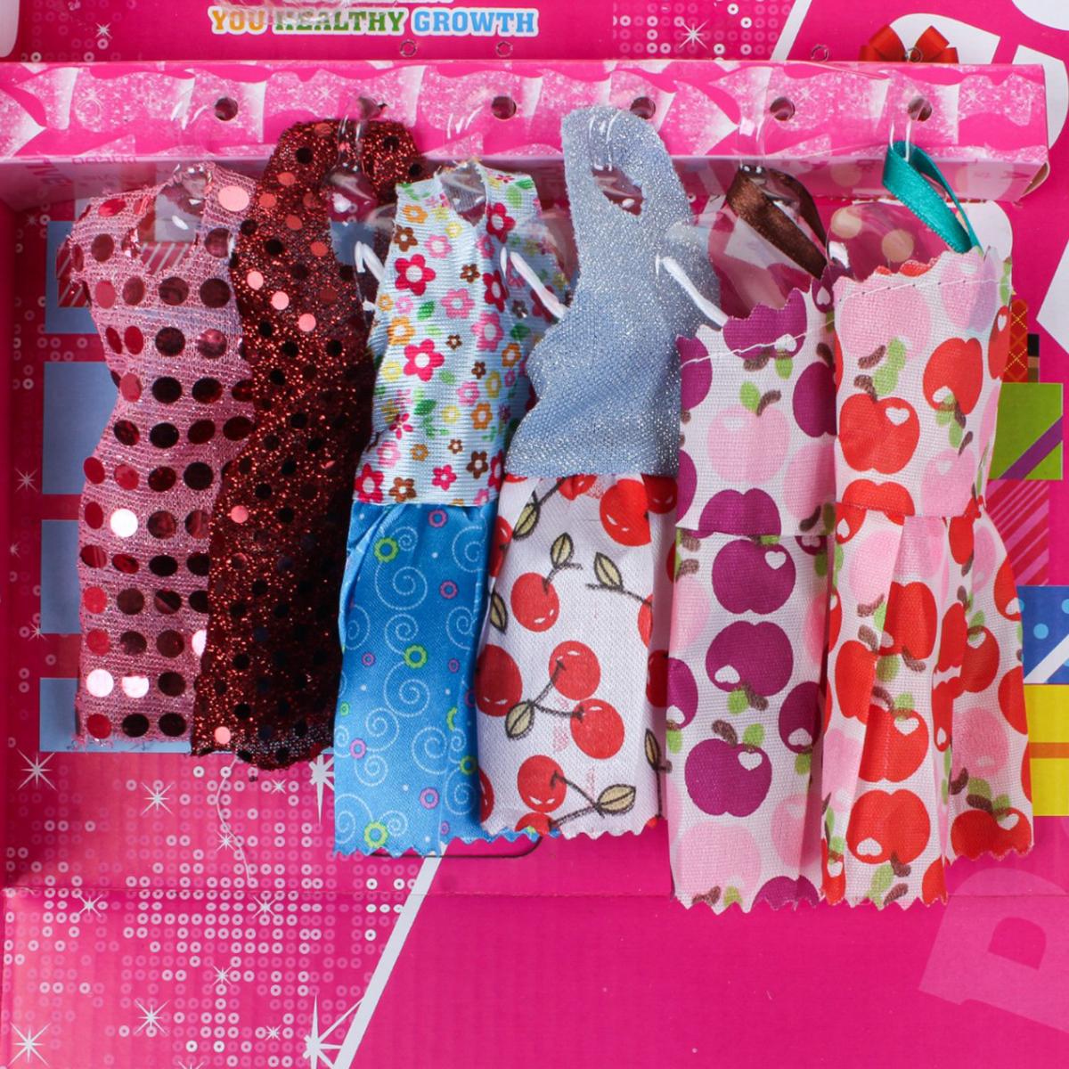 - Несколько стильных нарядов для куклы (платья разных цветов и фасонов)
