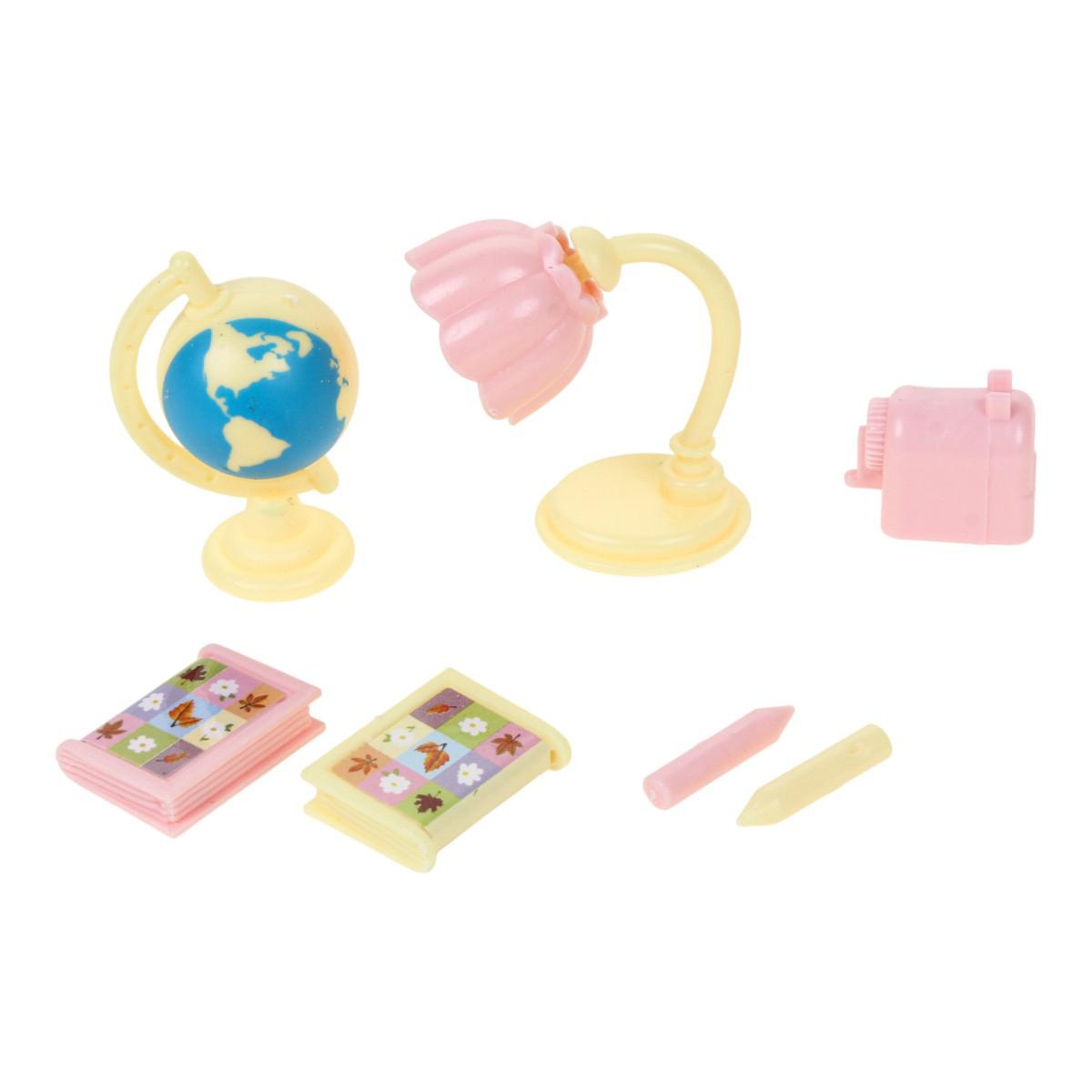 - Набор аксессуаров для создания интерьера: глобус, настольная лампа, сумочка, расчёска