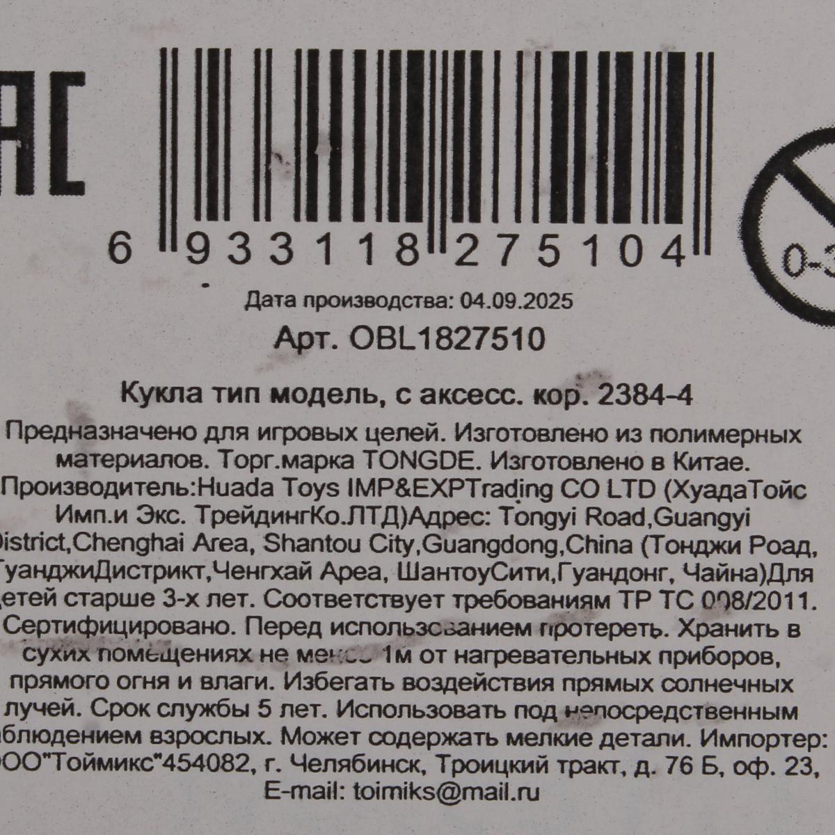 Кукла изготовлена из прочного и приятного на ощупь пластика, не имеет острых углов и пройдена возрастную маркировку 3+. Материалы устойчивы к падениям, не выцветают и легко отмываются от маркера и грязи, поэтому игрушка прослужит долго и сохранит первозданный вид.