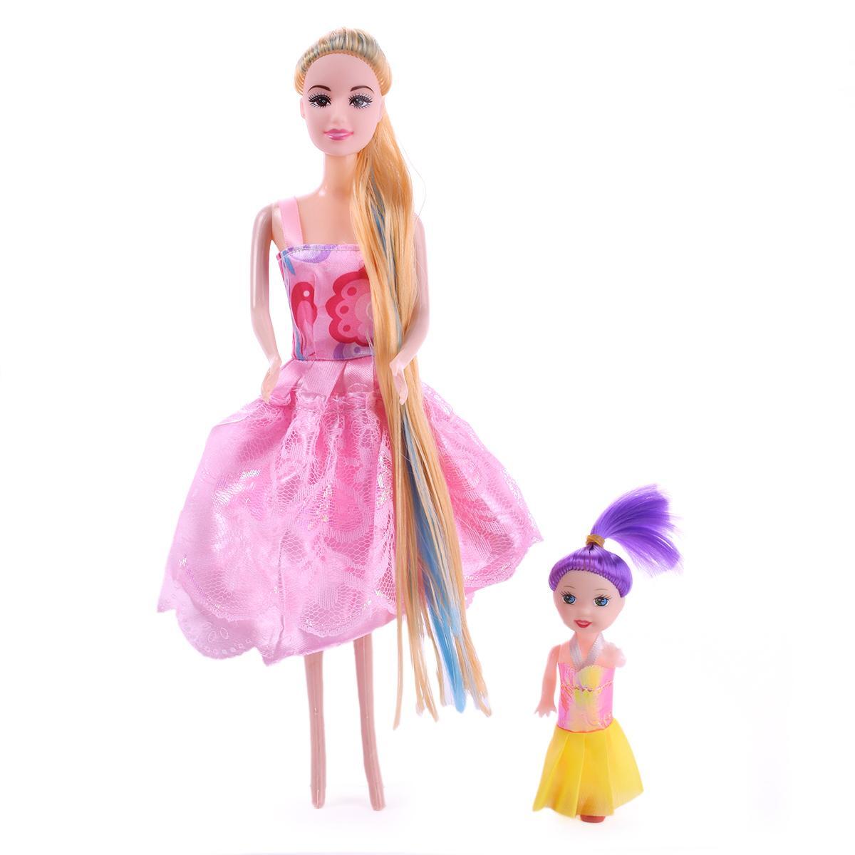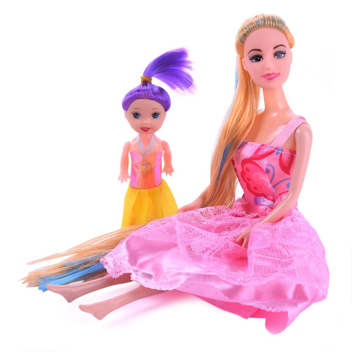 Набор из двух ярких кукол подарит ребенку возможность создавать трогательные семейные истории. Большая кукла в изысканном розовом платье с кружевами и маленькая куколка в солнечно-желтой юбке станут идеальными персонажами для развития социальных навыков и творческого мышления.