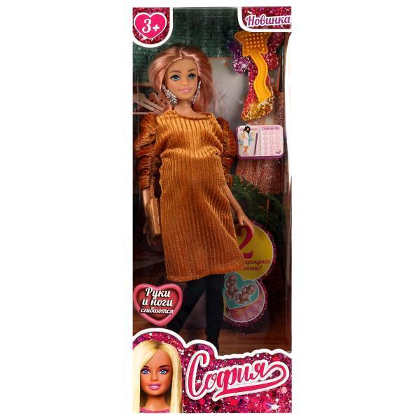 Кукла «София» беременная 29 см с аксессуарами, подвижные руки/ноги, платье оранжевое
