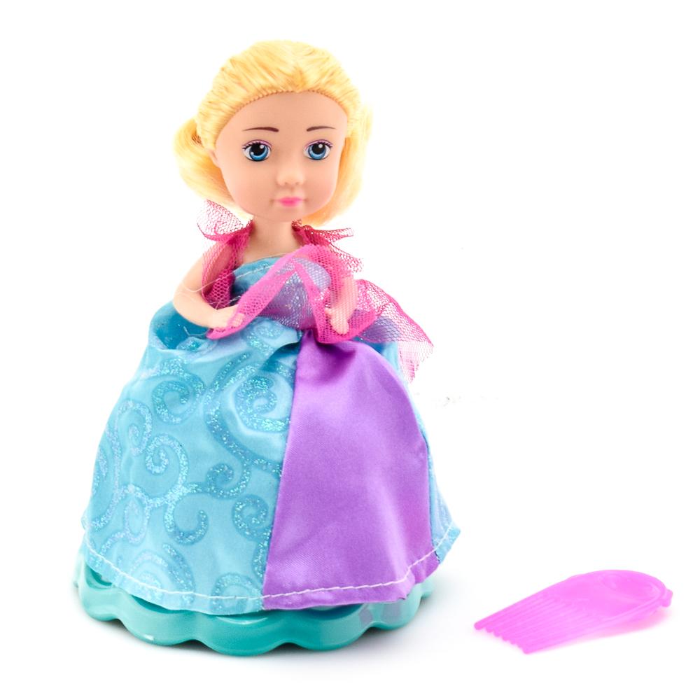 - Раскройте капкейк-сюрприз и достаньте куклу с длинными светлыми волосами