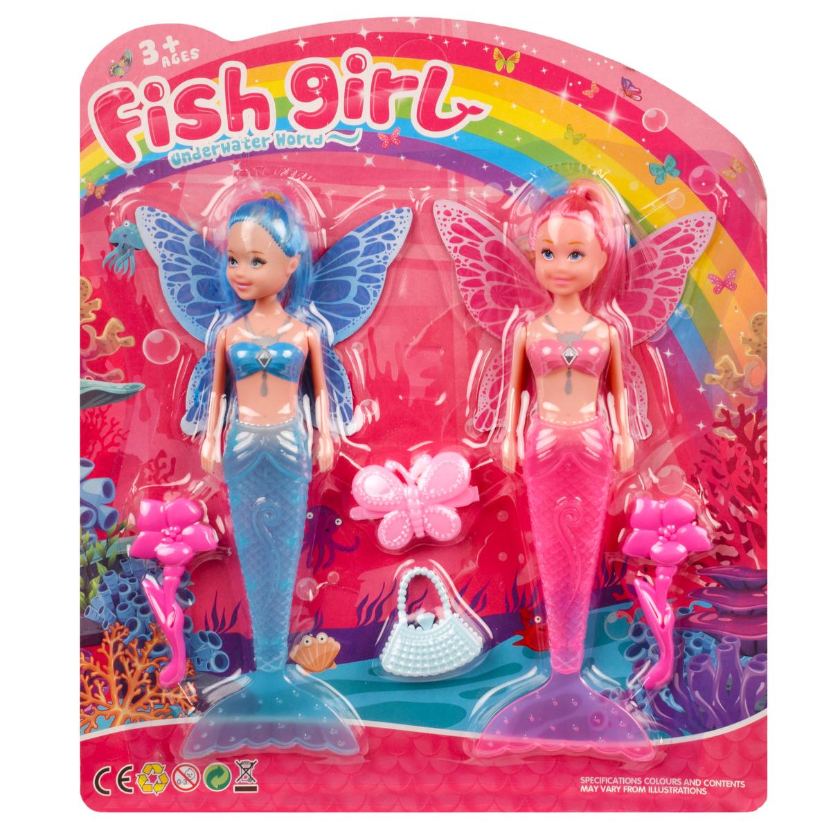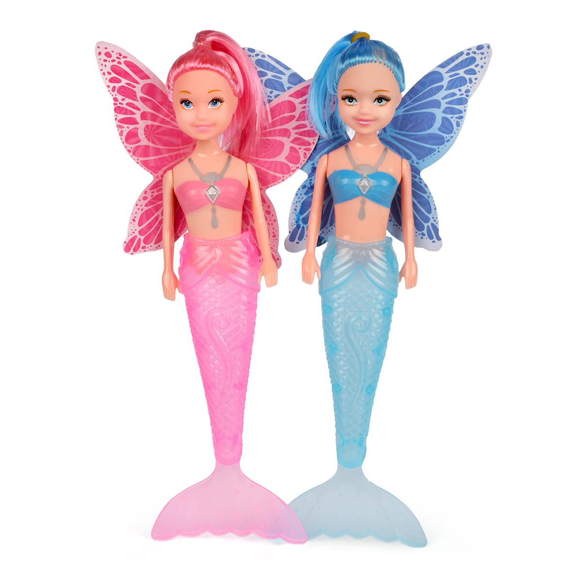 Кукла-русалка с крыльями феи, 2 шт в наборе, розовая/голубая, аксессуары в комплекте