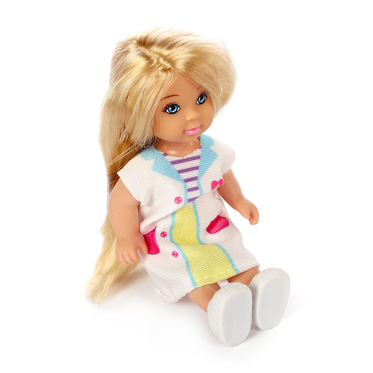 - Кукла высотой 18 см со светлыми волосами и подвижными конечностями