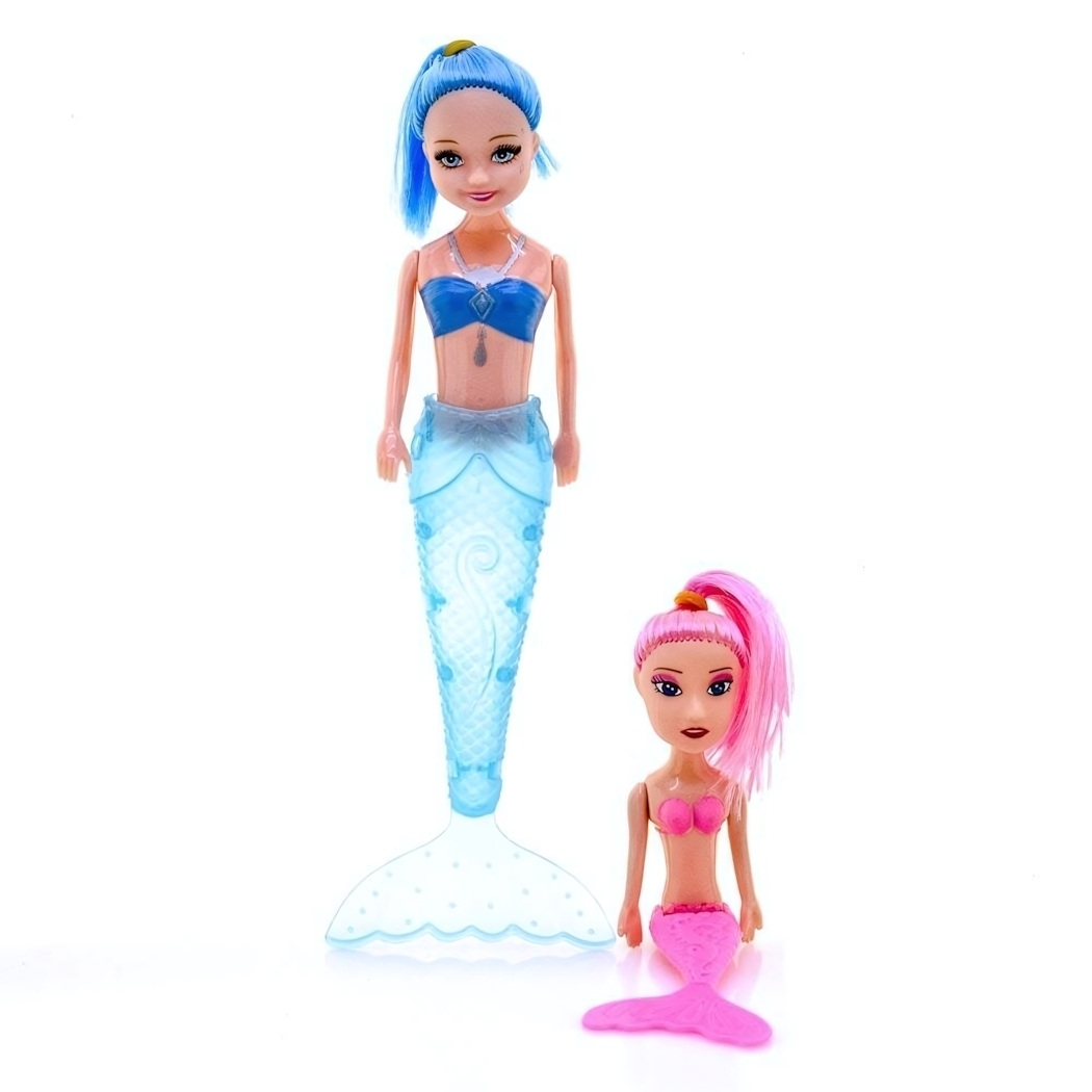 Куклы подходят для детей от 3 лет и старше. Они легко удерживаются в руках, что позволяет детям свободно играть и развивать свою фантазию. Каждая кукла имеет уникальный стиль: одна с длинными светло-голубыми волосами и переливающимся хвостом, другая с короткими розовыми волосами и ярким хвостом. Это делает их отличным выбором для создания различных игровых сценариев.