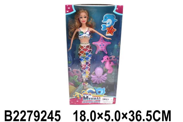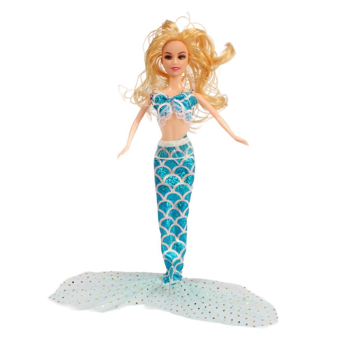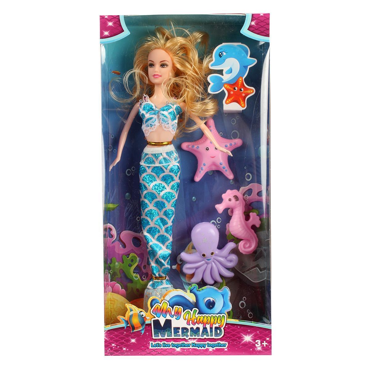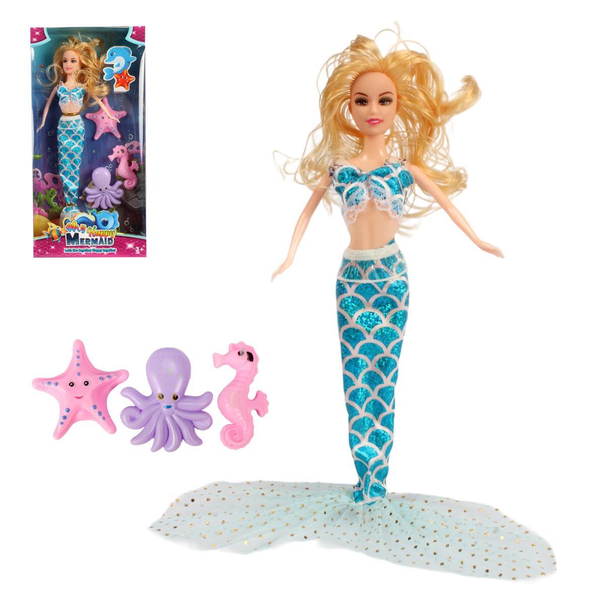 Кукла русалка 'My Happy Mermaid', голубой хвост, светлые волосы, с аксессуарами, пластик/текстиль, 36.5см