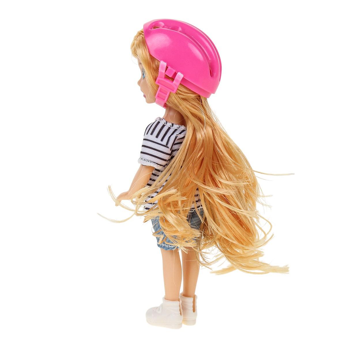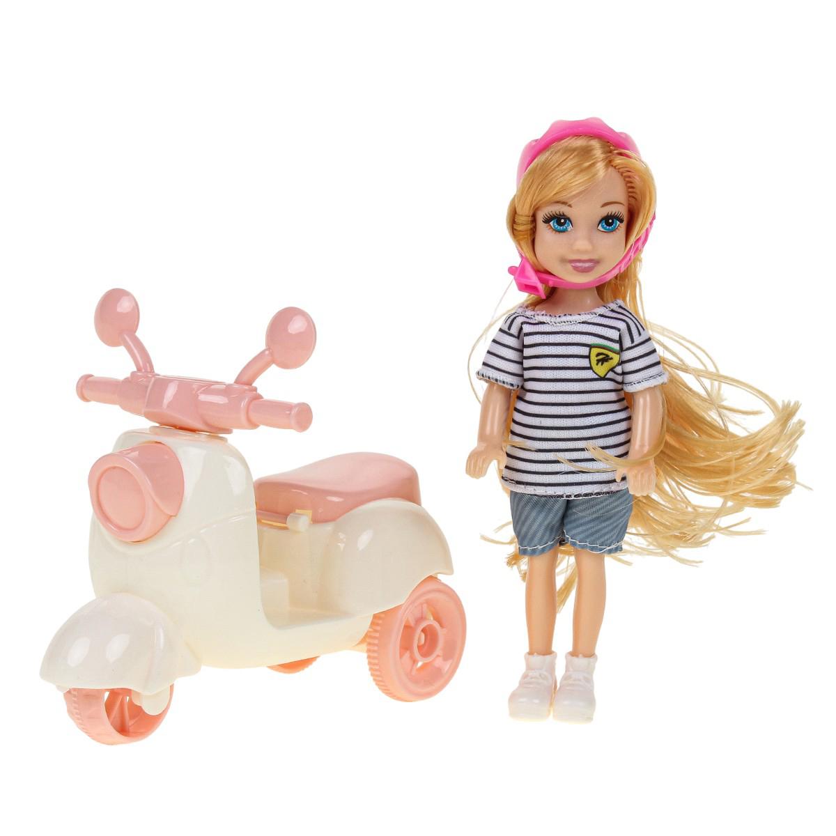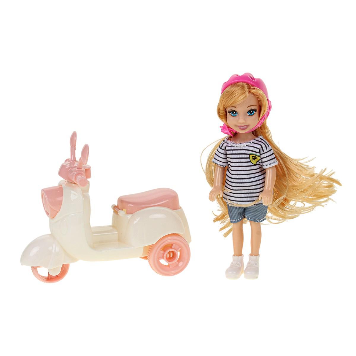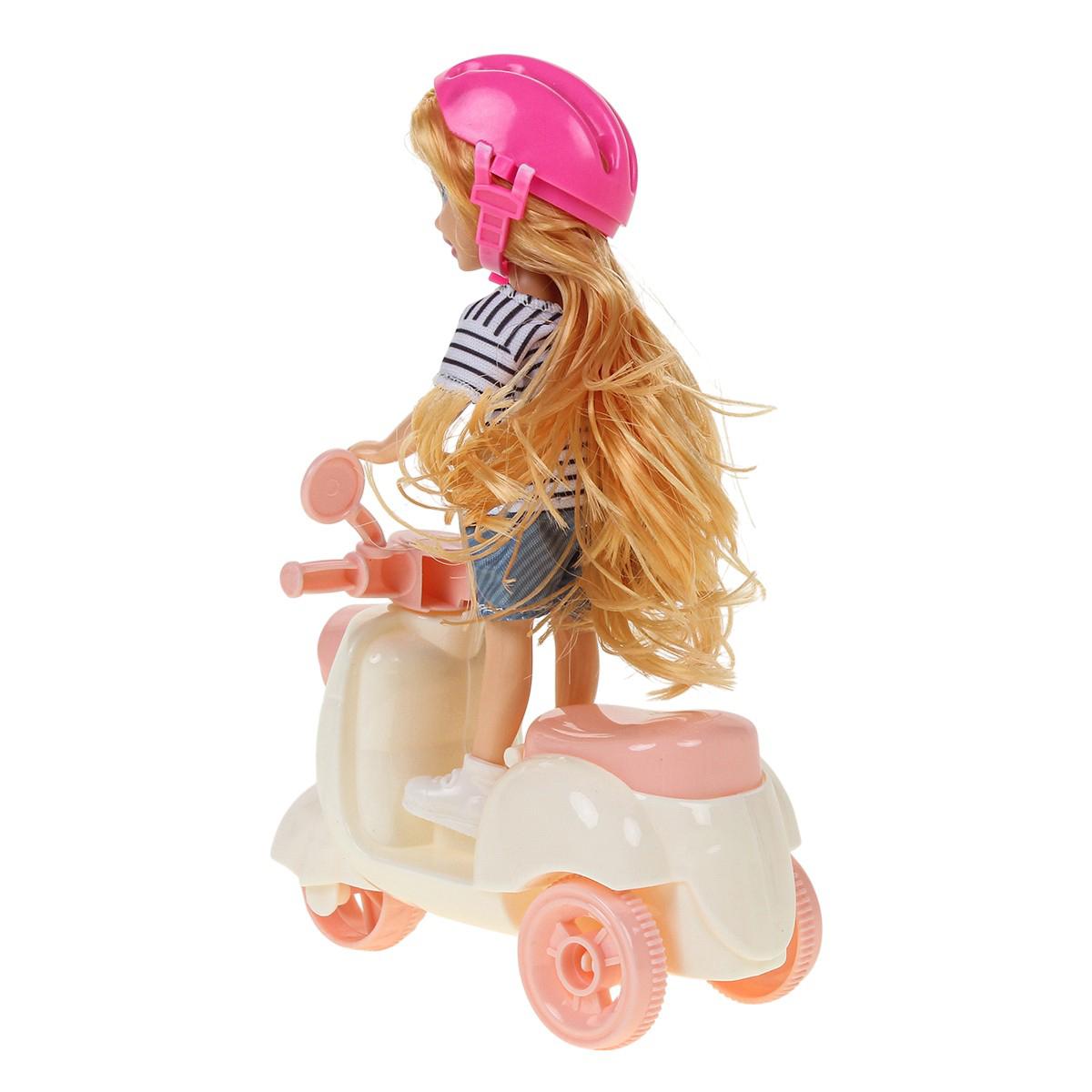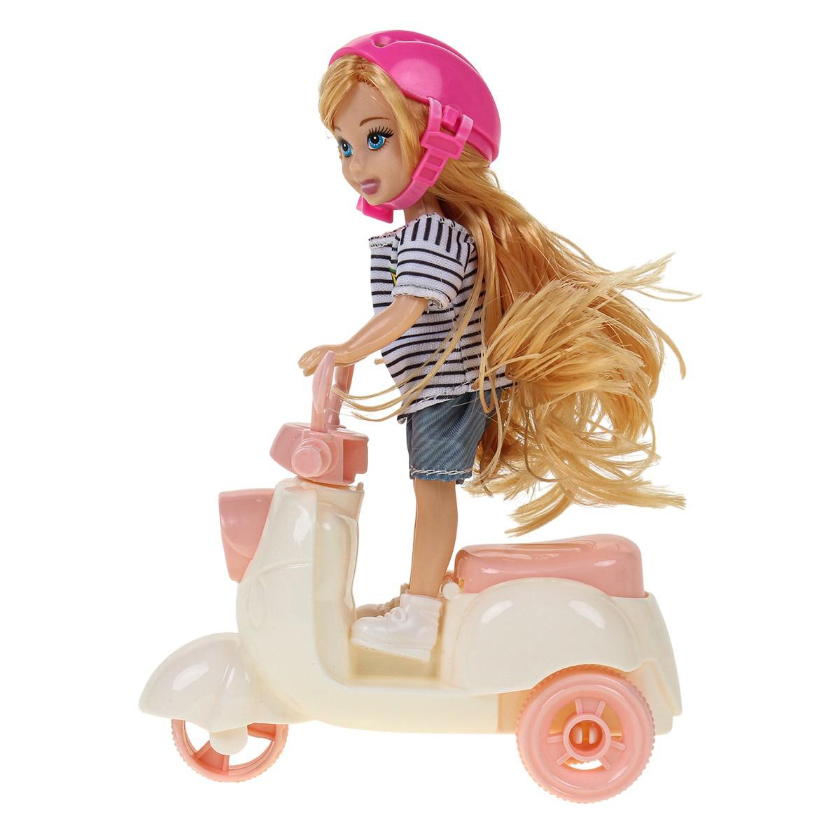 Эта яркая и удобная кукла типа модница идеально подходит для игры дома и на улице. Размер набора 20x5.5x18 см, он включает куклу, аксессуары, мопед и шлем, что позволяет детям создавать разнообразные игровые сценарии и развивать моторику, фантазию и коммуникативные навыки. Кукла изготовлена из прочных и безопасных материалов, что обеспечивает долгий срок службы и безопасность во время активных игр.