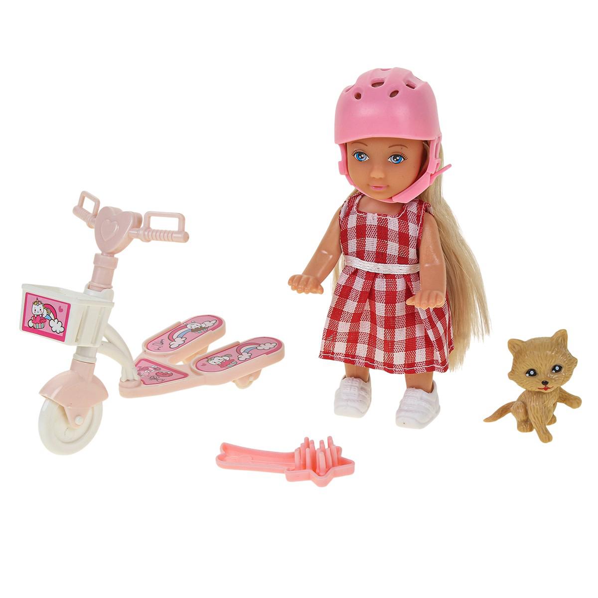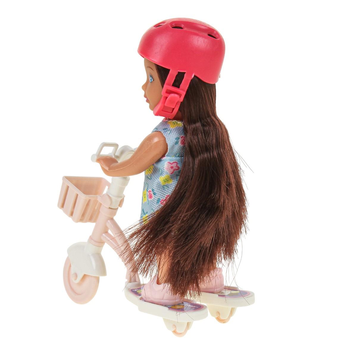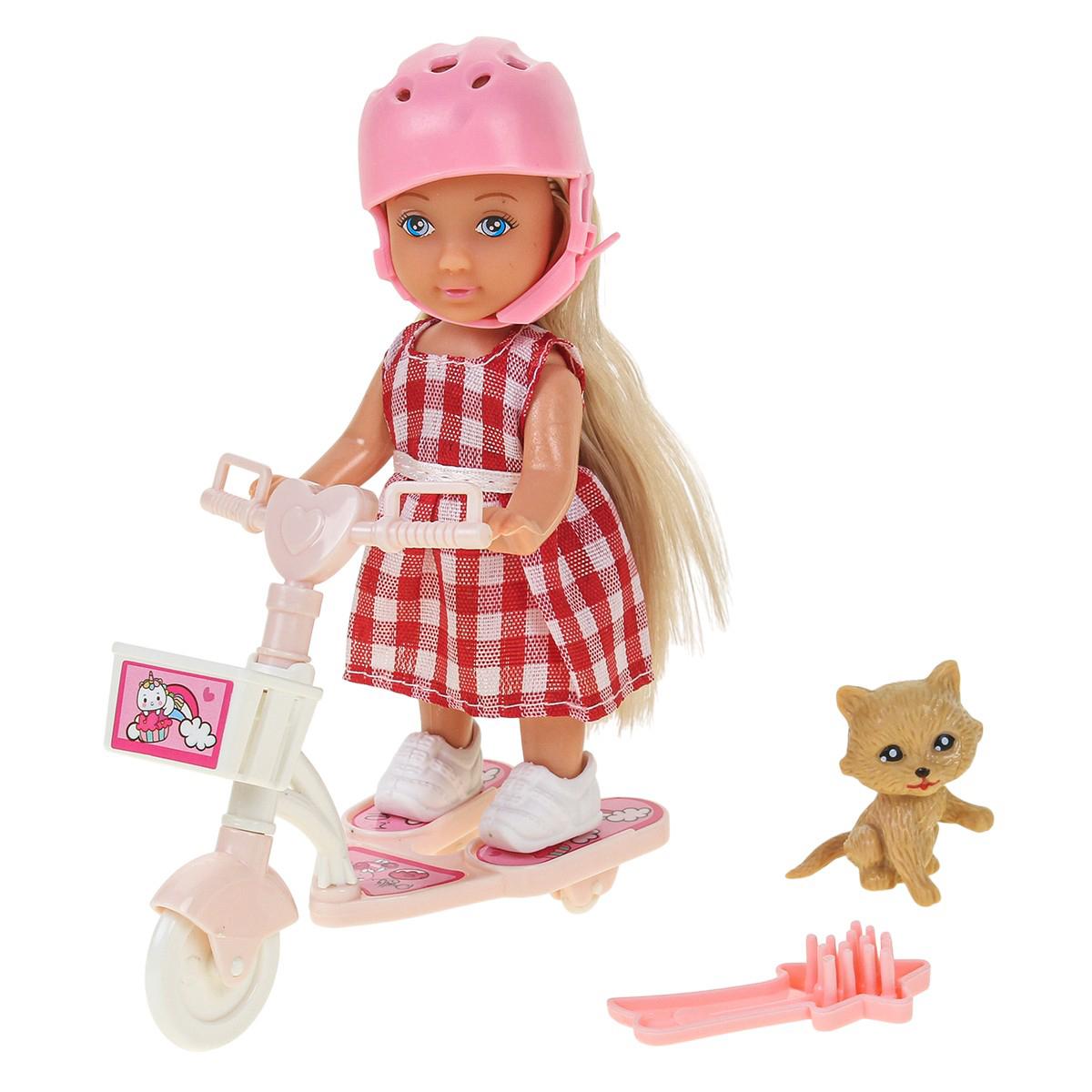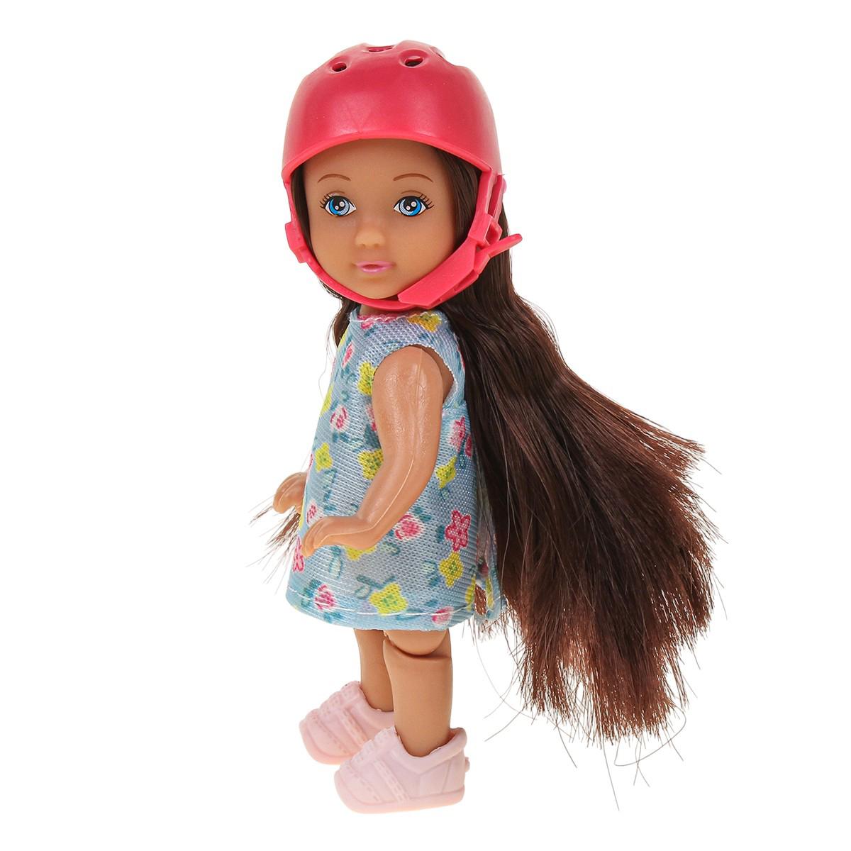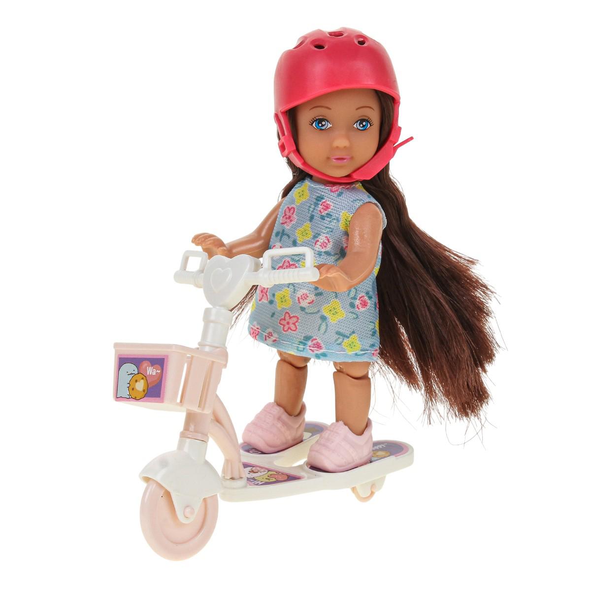 - Полный комплект для приключений: В набор входят не только сама кукла, но и стильные аксессуары: яркий самокат для захватывающих прогулок, защитный шлем для безопасности, а также любимый питомец, который составит ей компанию.