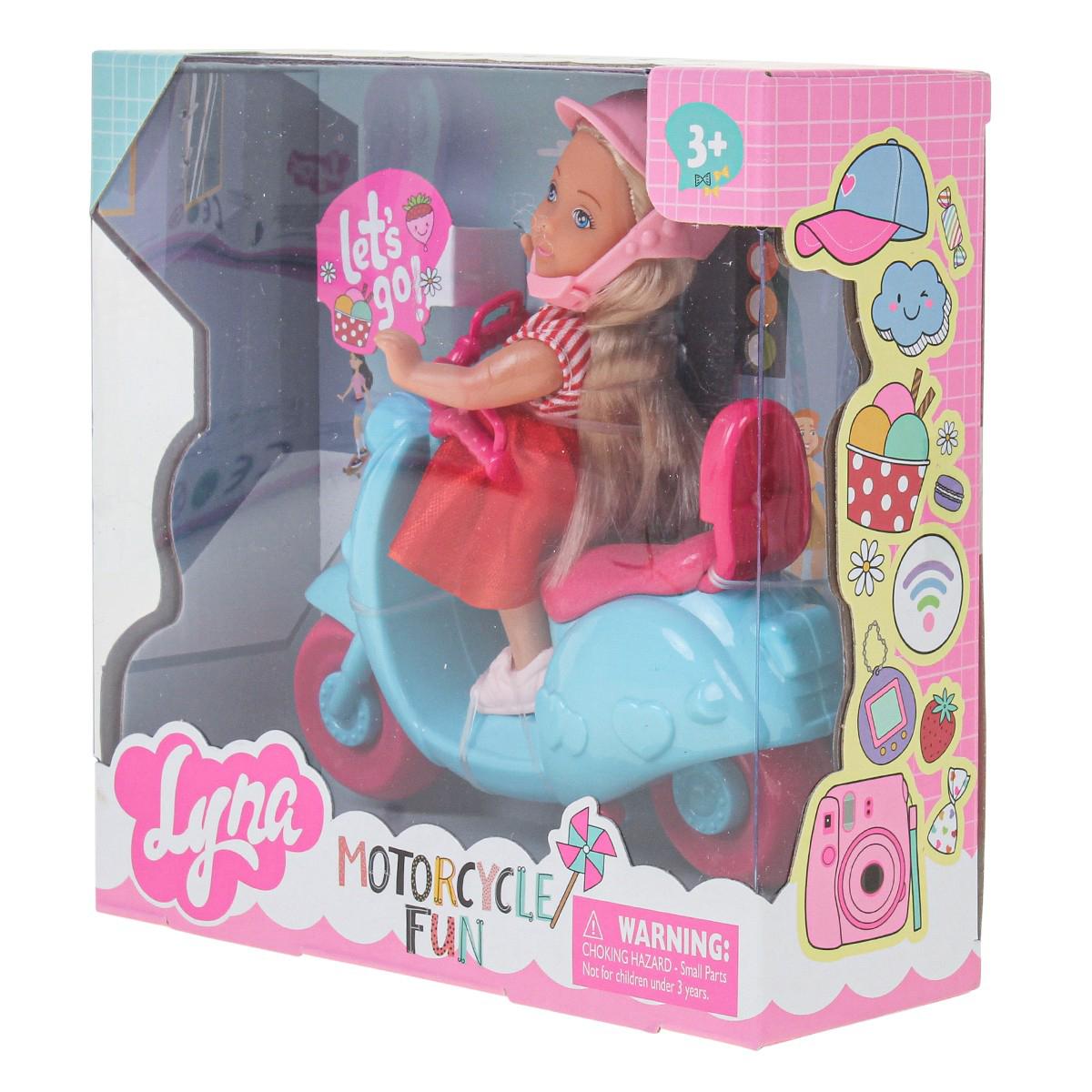 - Цвет мопеда и куклы выбирается случайным образом — ребёнок получит маленький сюрприз, а вы не переплачиваете за «раскладку».