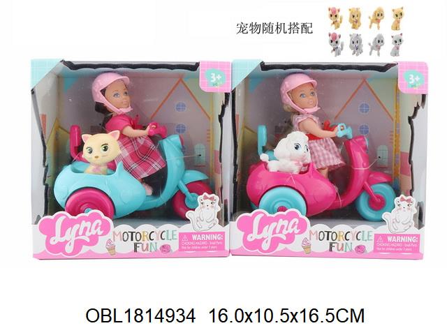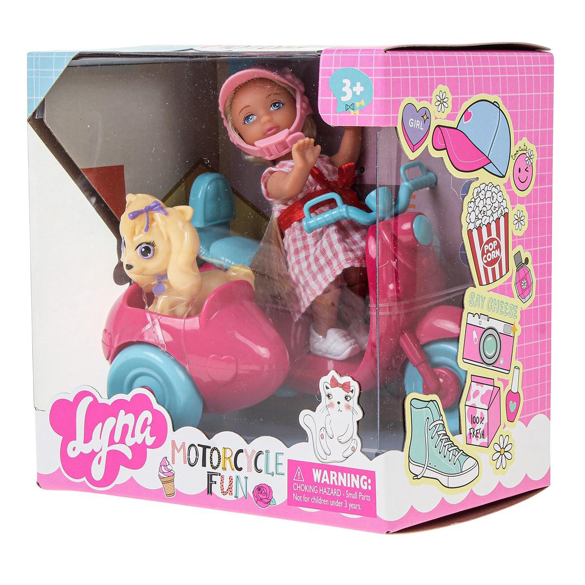 кукла "lyna" мотоцикл с питомцем, 16*11*17 см, разноцветный принт, развивает моторику
