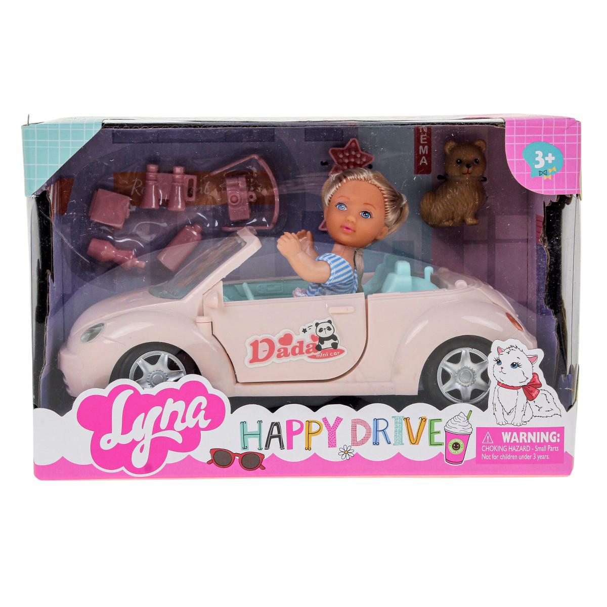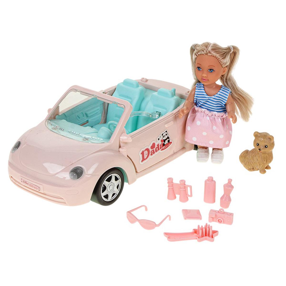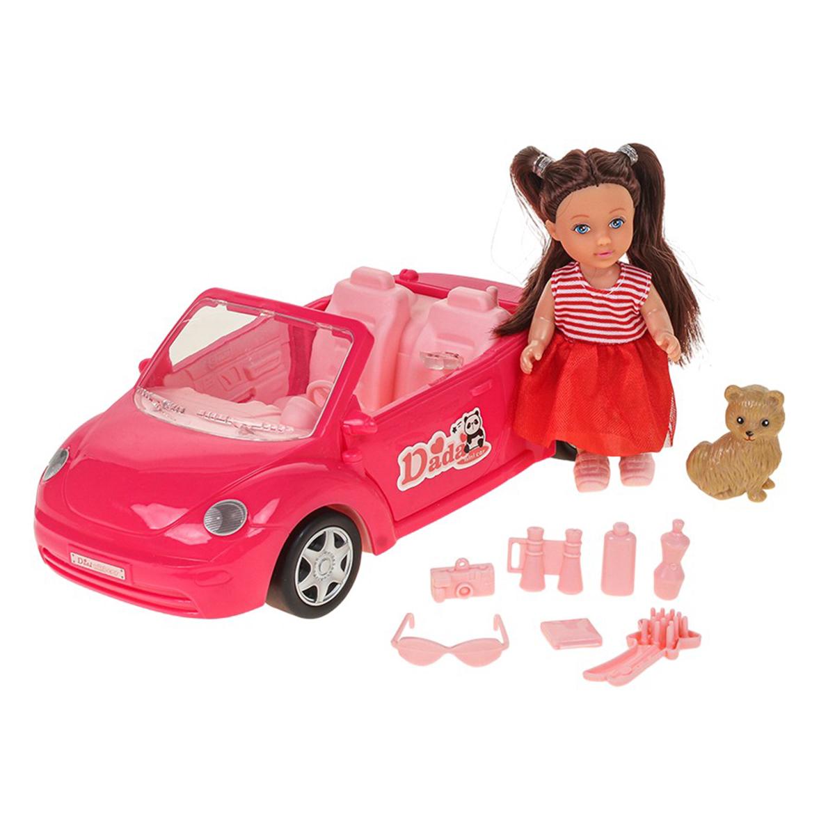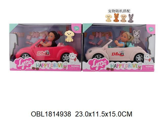 - Комплектация: кукла, аксессуары, автомобиль-коробка, собачка, мышонок