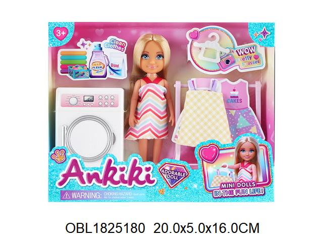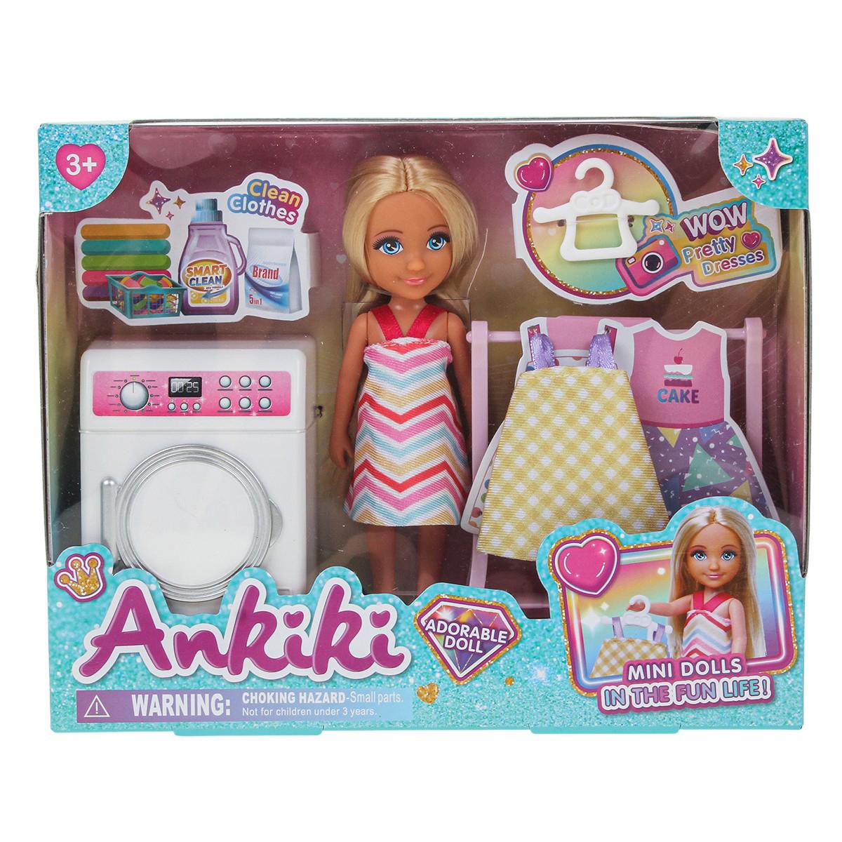 Кукла "Ankiki" модница с аксессуарами, стиральная машина, 2 платья, вешалка, для девочек от 3 лет, размер набора 20*5*16см