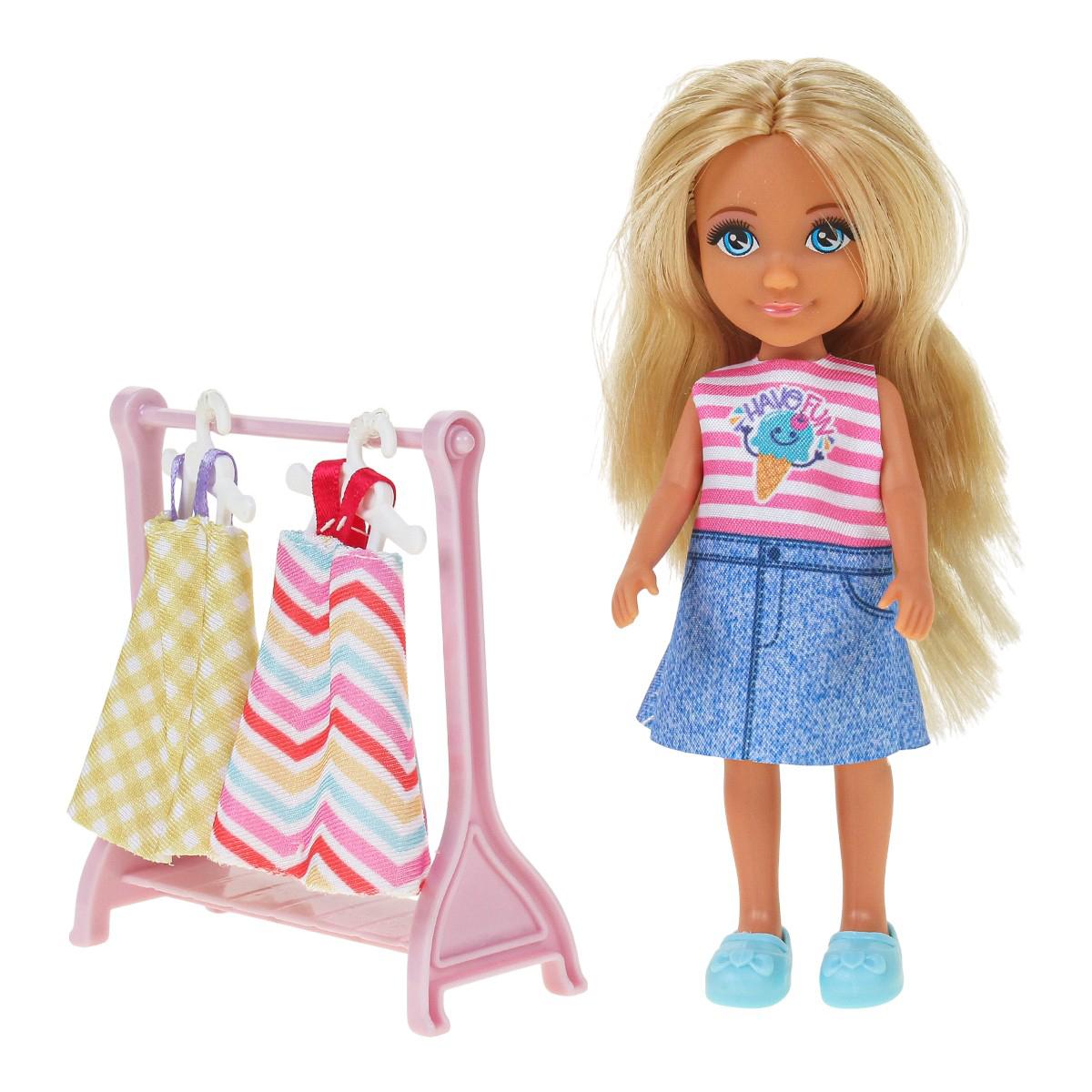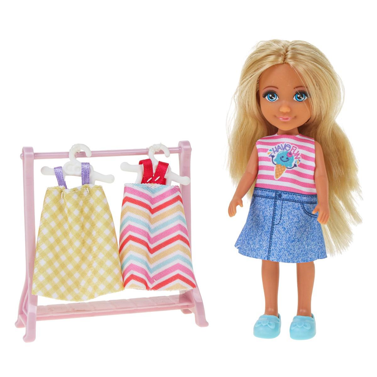 - В комплекте: кукла-модница, 2 сменных платья, 2 вешалки.