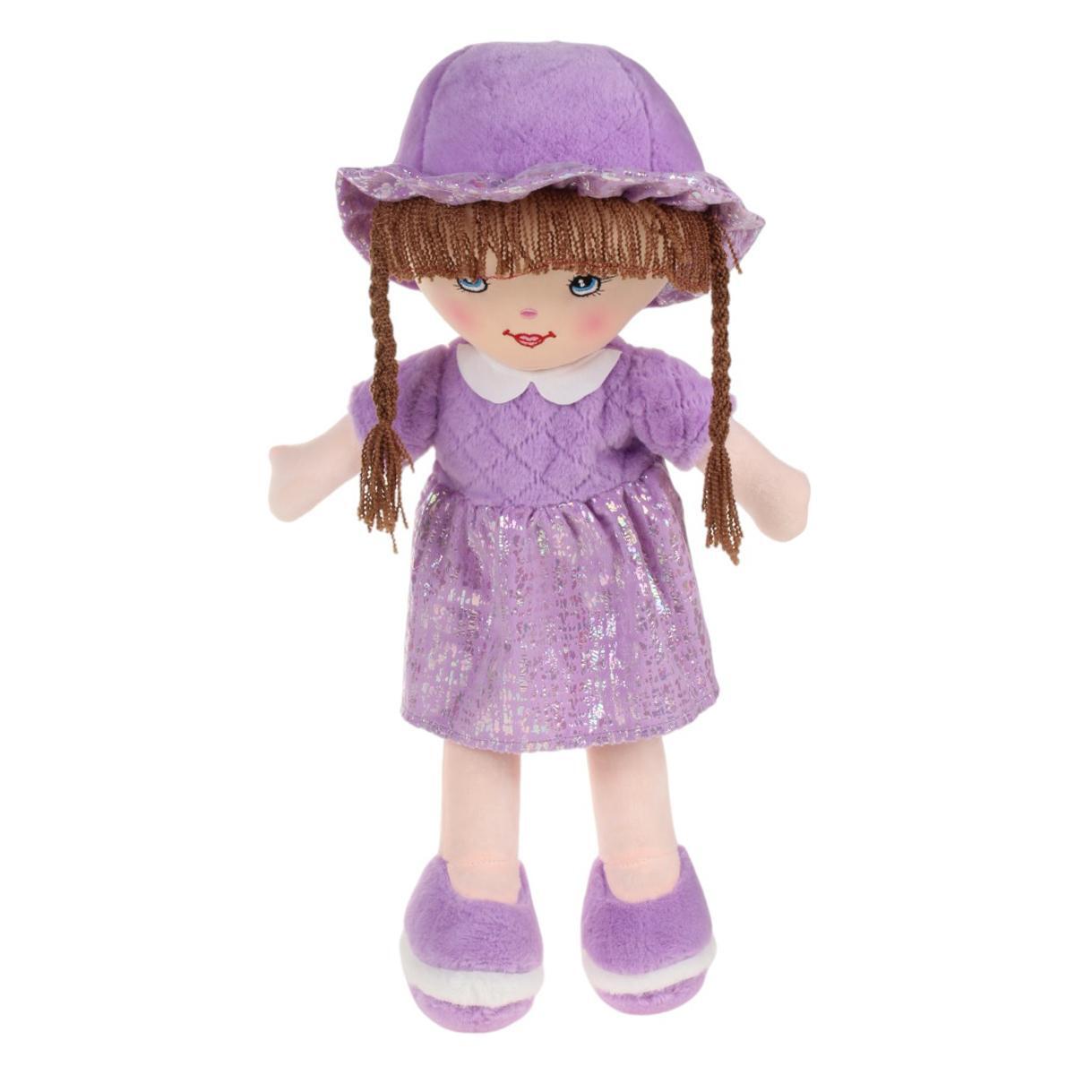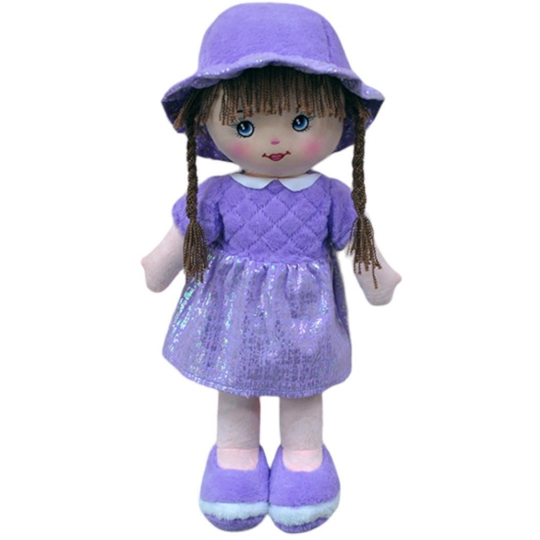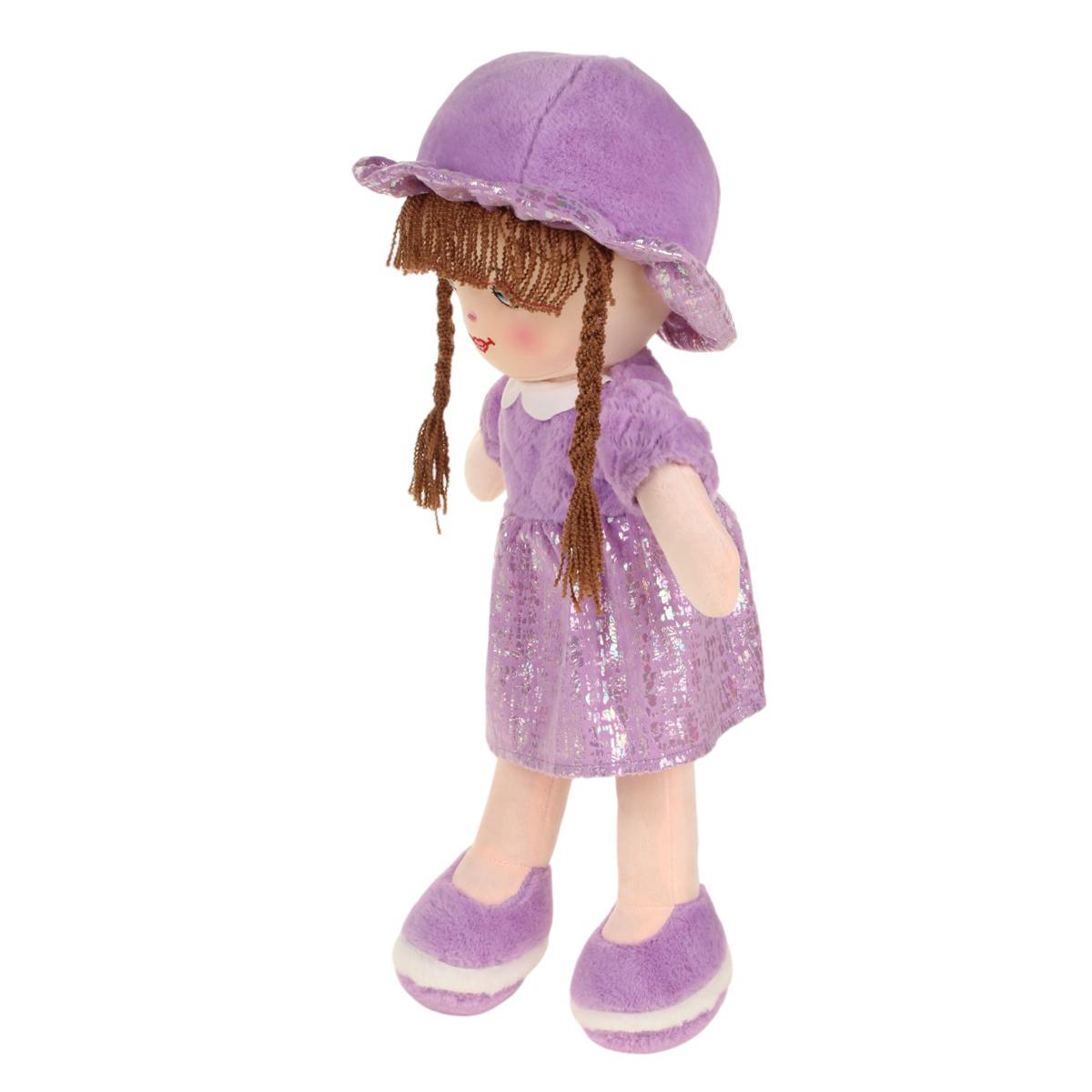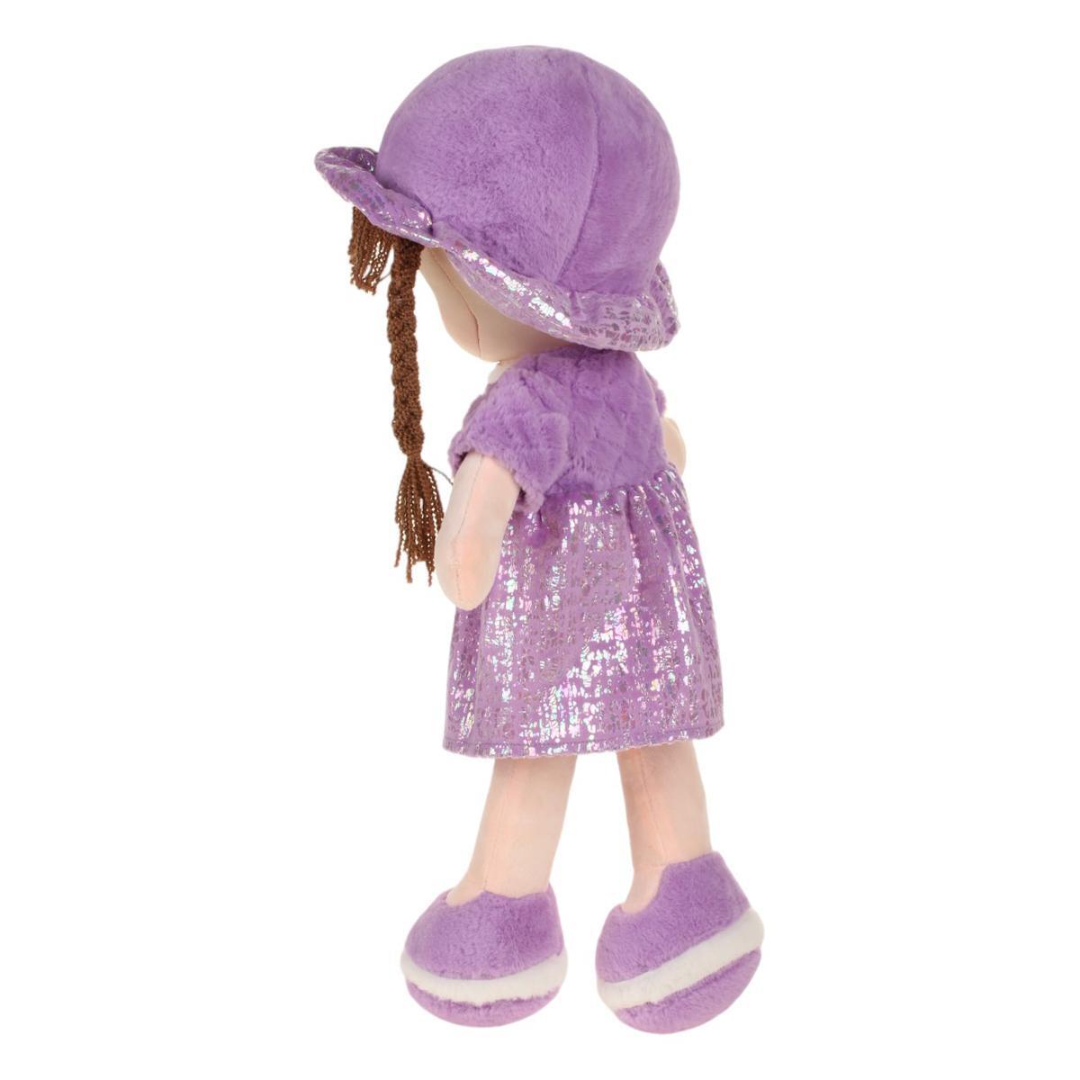 Кукла текстильная в фиолетовом платье, рост 58см, с длинными косами