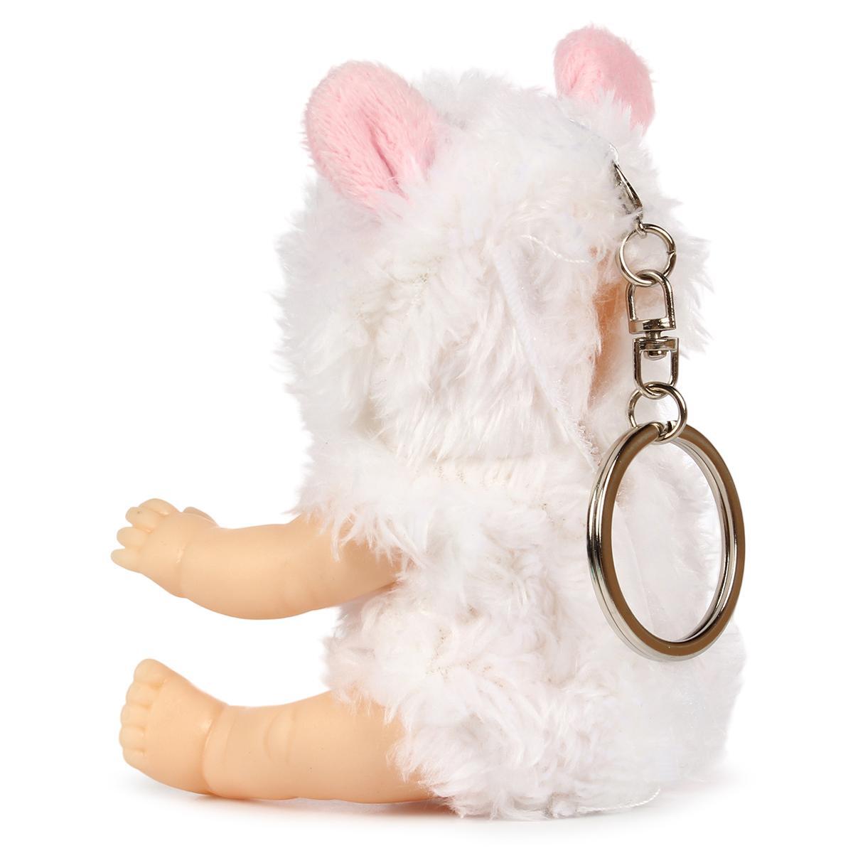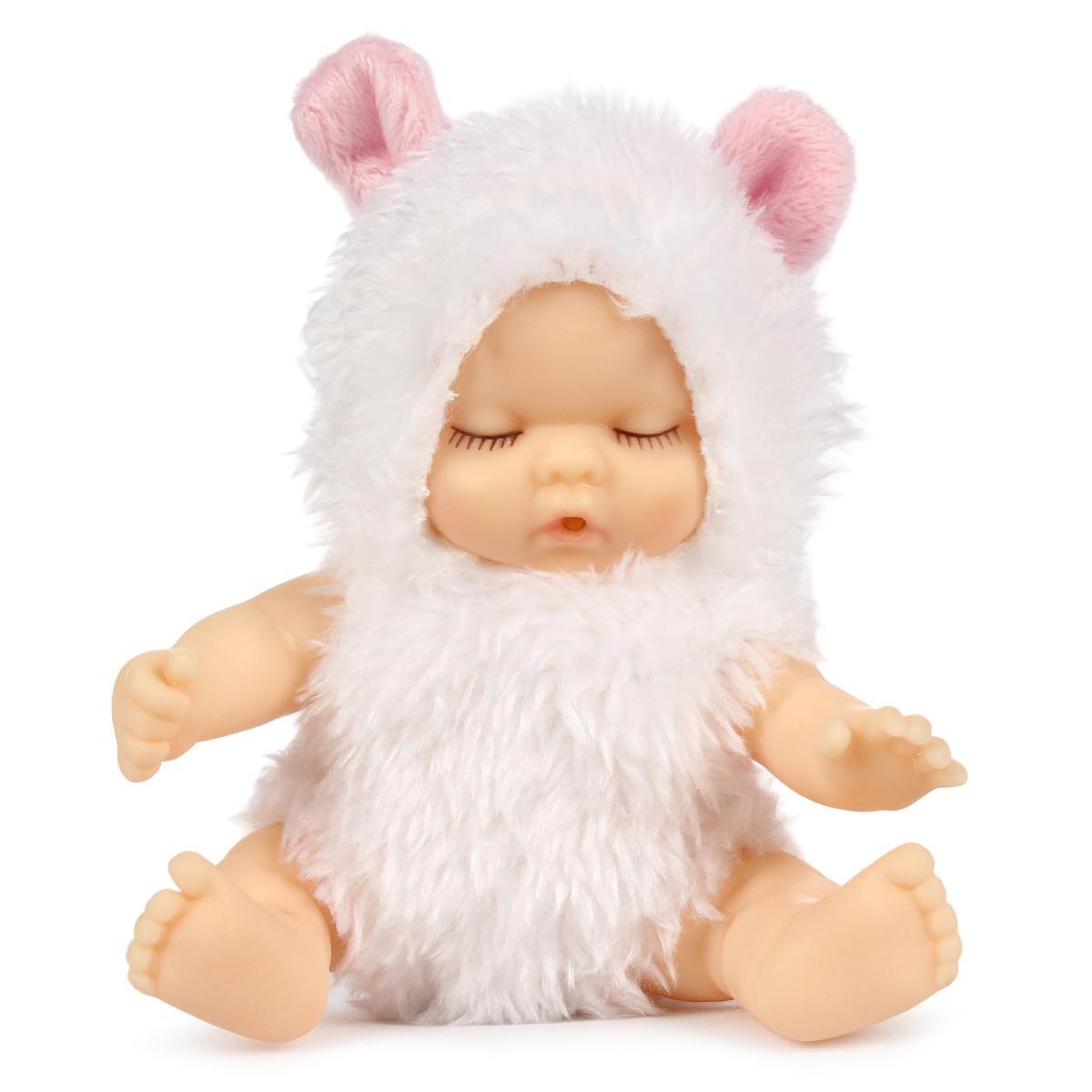 Куколка OLY спящая, 8см, в белом меховом костюмчике, с бутылочкой