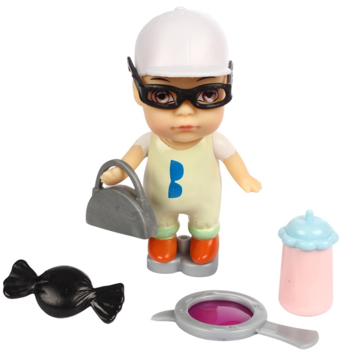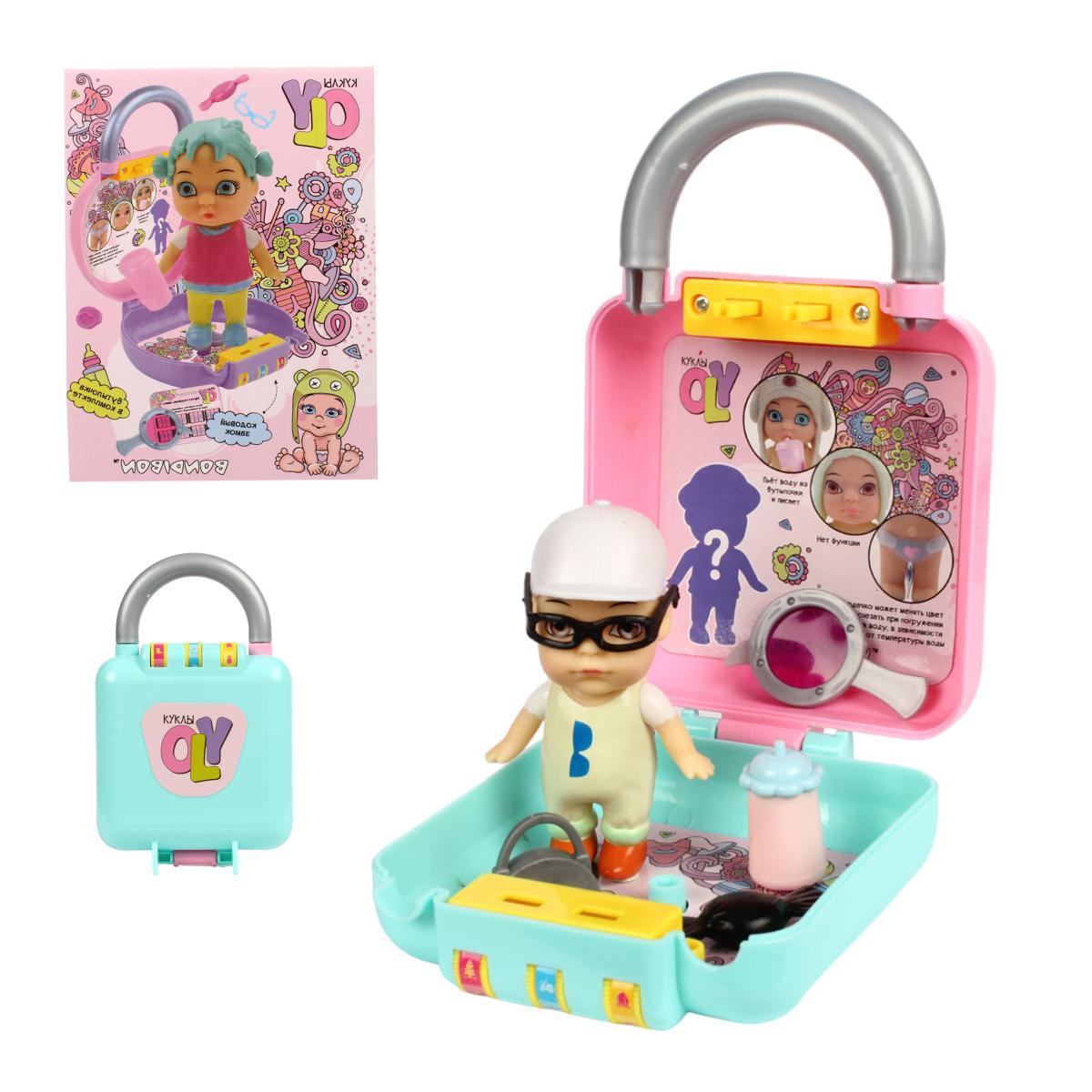 Кукла-мальчик OLY 8 см в чемоданчике с кодовым замком, съемные аксессуары, интерактивная игра