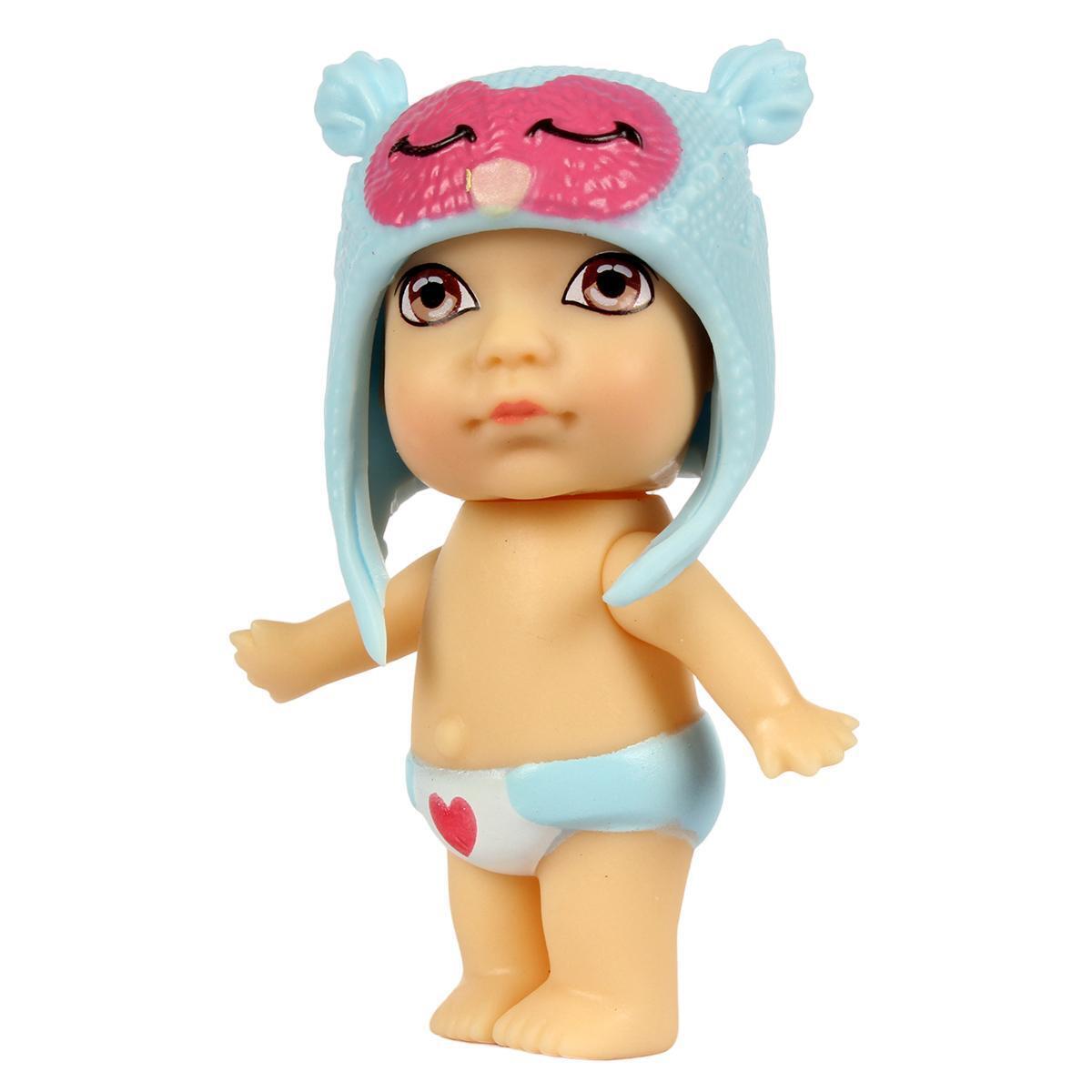 Размер куклы: 8 см. Материал: мягкий пластик и текстиль. Цвет шапочки: голубой с ушками. Подходит для игры дома, в дороге или в развивающем центре. Заботьтесь о мелочах — выбирайте качественные игрушки, которые будут радовать малыша долгое время.