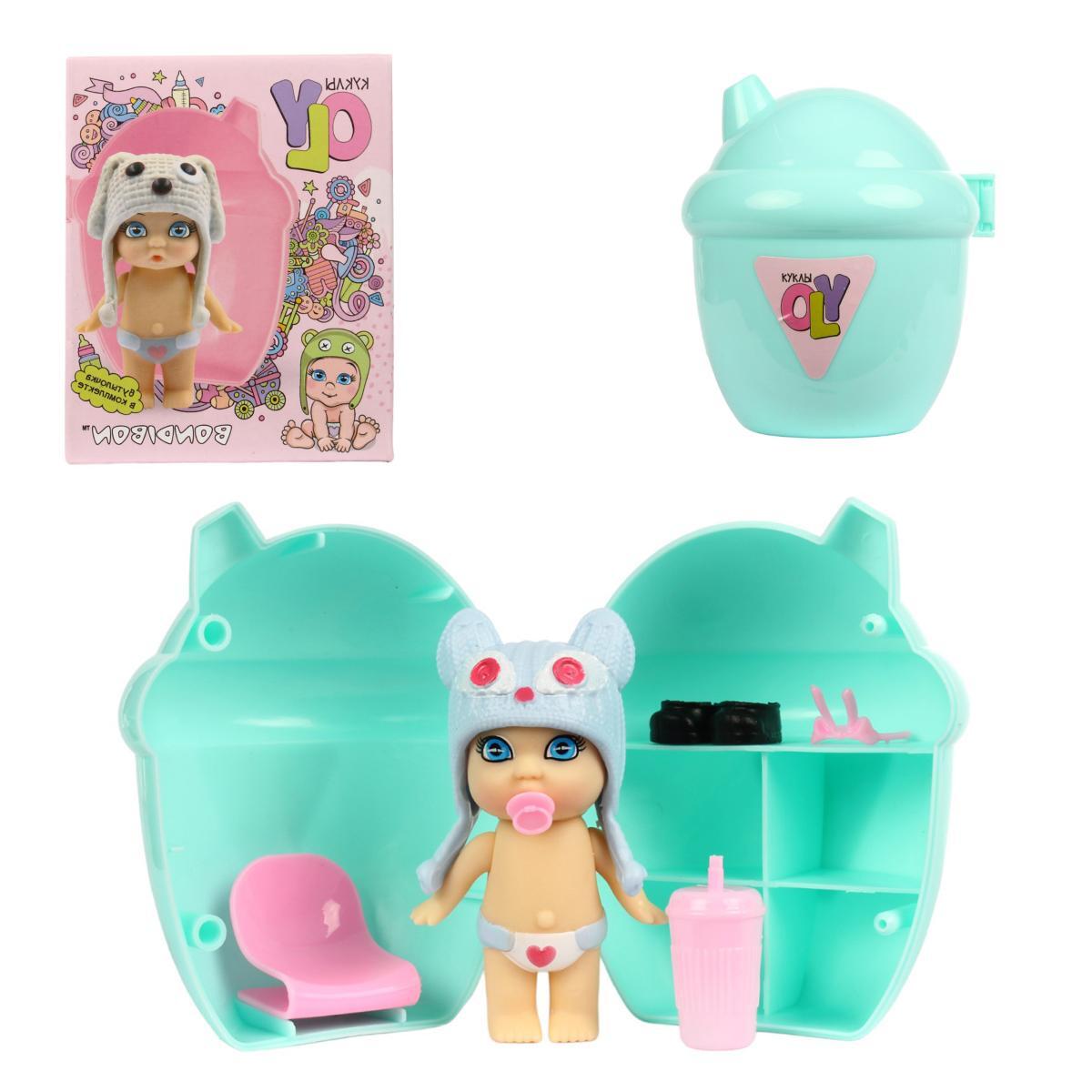 Кукла OLY с шапочкой-ушанкой и аксессуарами, 8 см, пластик, контейнер-стакан для хранения