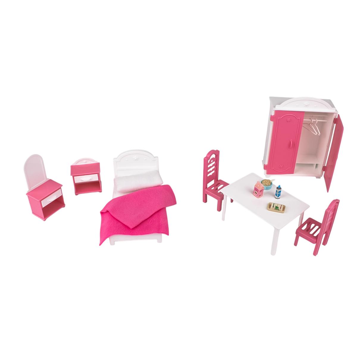 Подарите вашему ребенку возможность стать настоящим дизайнером интерьера. Набор кукольной мебели серии "Knopa" — это готовое решение для обустройства спальни и столовой в кукольном домике. Элегантное сочетание розового и белого цветов создает атмосферу нежности и уюта, превращая обычную игру в захватывающую историю.