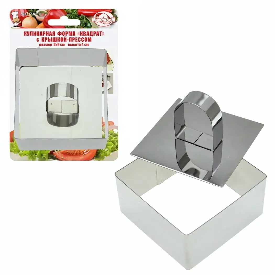 Кулинарная форма «Квадрат» 8х8х4 см, коррозионностойкая сталь, крышка-пресс