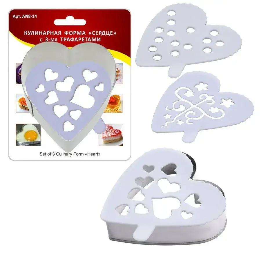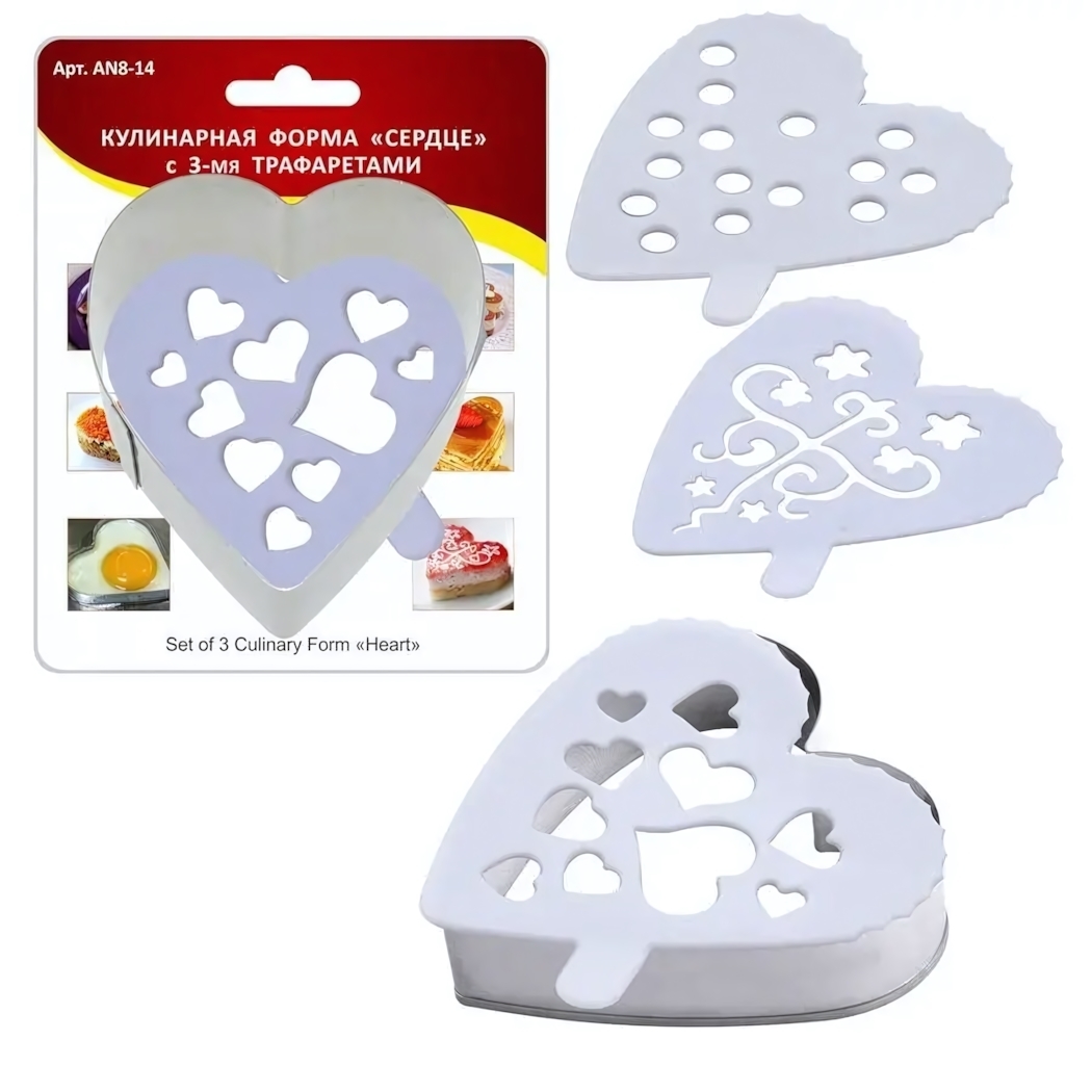 Три профессиональные формы в одном комплекте помогут вам легко воплощать кулинарные фантазии! Набор включает основное сердце с ажурными отверстиями и две дополнительные трафаретные пластины для создания многослойных узоров.